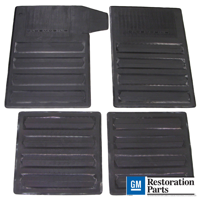 Enhance the interior of your classic Oldsmobile with the FM 7301 floor mats by Metro Moulded Parts. Designed to fit a range of vehicles from the vintage 1968 to 1972 Oldsmobile 442 and Cutlass models, these top-quality mats are a perfect restoration piece. Often referred to as front and rear mats, black mats, or reproduction floor mats, they come in a set of four to offer seamless style and protection. Featuring a robust, heavy-duty design and easy-to-clean surface, these mats are not only visually appealing with their ribbed texture but also highly practical.The detailed grooves provide effective dirt and debris capture, keeping your car’s interior spotless while the ridged surface adds an extra touch of sophistication. The straightforward installation allows you to effortlessly put these mats in place for immediate transformation. Whether you’re showing your car at an event or just enjoying a cruise, these mats bring both style and function without compromise.Backed by Metro's exceptional platinum warranty, these mats come with a "No Hassle" guarantee for 30 years, ensuring long-lasting durability and peace of mind. Step up your classic car experience today and enjoy the premium quality and timeless charm.