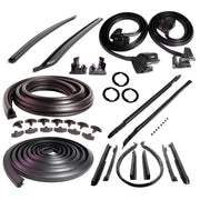 The SUPERsoft RK 7300-108 is a comprehensive Master Kit designed for the 1969 Oldsmobile 442 and Cutlass cars. Often referred to as the Ultimate Seal Kit or Classic Car Preservation Kit, it includes door seals (LM 12-A), roof-rail seals (RR 1610), trunk seal (TK 46-16), door lock pillar seals (ALP 5002), lock cylinder pads (UM 1600-100), rear roll-up seals (VS 3-M), pillar-post seals (CZ 8103), and hood-to-cowl seal (CS 5). With its smooth finish and durable construction, this kit ensures a snug fit and superior protection against weather elements.Each component in this convenient kit is crafted from high-quality materials, featuring grooves and ridges that enhance their sealing capability and longevity. Installation is straightforward, making it an ideal choice for car enthusiasts who enjoy a hands-on approach. The kit is designed to fit perfectly, providing a seamless integration with your vehicle's existing structure, thus preserving its classic charm while enhancing its functionality.Elevate your vehicle's style and resilience with the SUPERsoft RK 7300-108 Master Kit. Designed for durability and ease of use, this kit is a must-have for maintaining the integrity of your classic car. Trust in the quality and make your purchase today with confidence, backed by Metro's platinum 30-year "No Hassle" warranty.