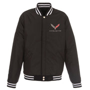 Corvette reversible fleece jacket with PU sleeves in black-white with nylon lining and embroidered logos. (Front Logo Only)