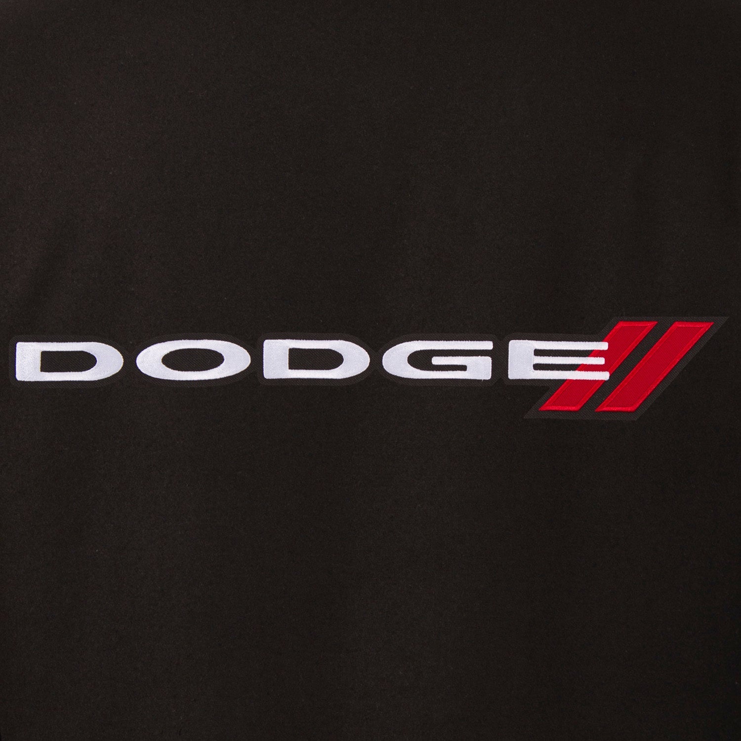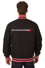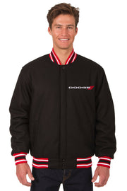Dodge all-wool reversible jacket in black-red with nylon lining and embroidered appliqué logos. (Front and Back Logos)