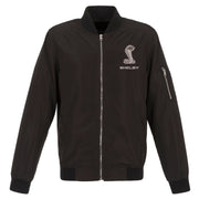 Color/Design: Black nylon bomber jacket with embroidered Shelby logos