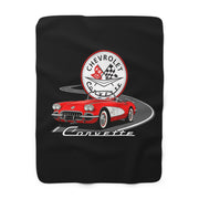 C1 Corvette Emblem & Track 50 x 60 Inch Sherpa Fleece Blanket – Legends of the Road, Perfect for the Corvette Fan