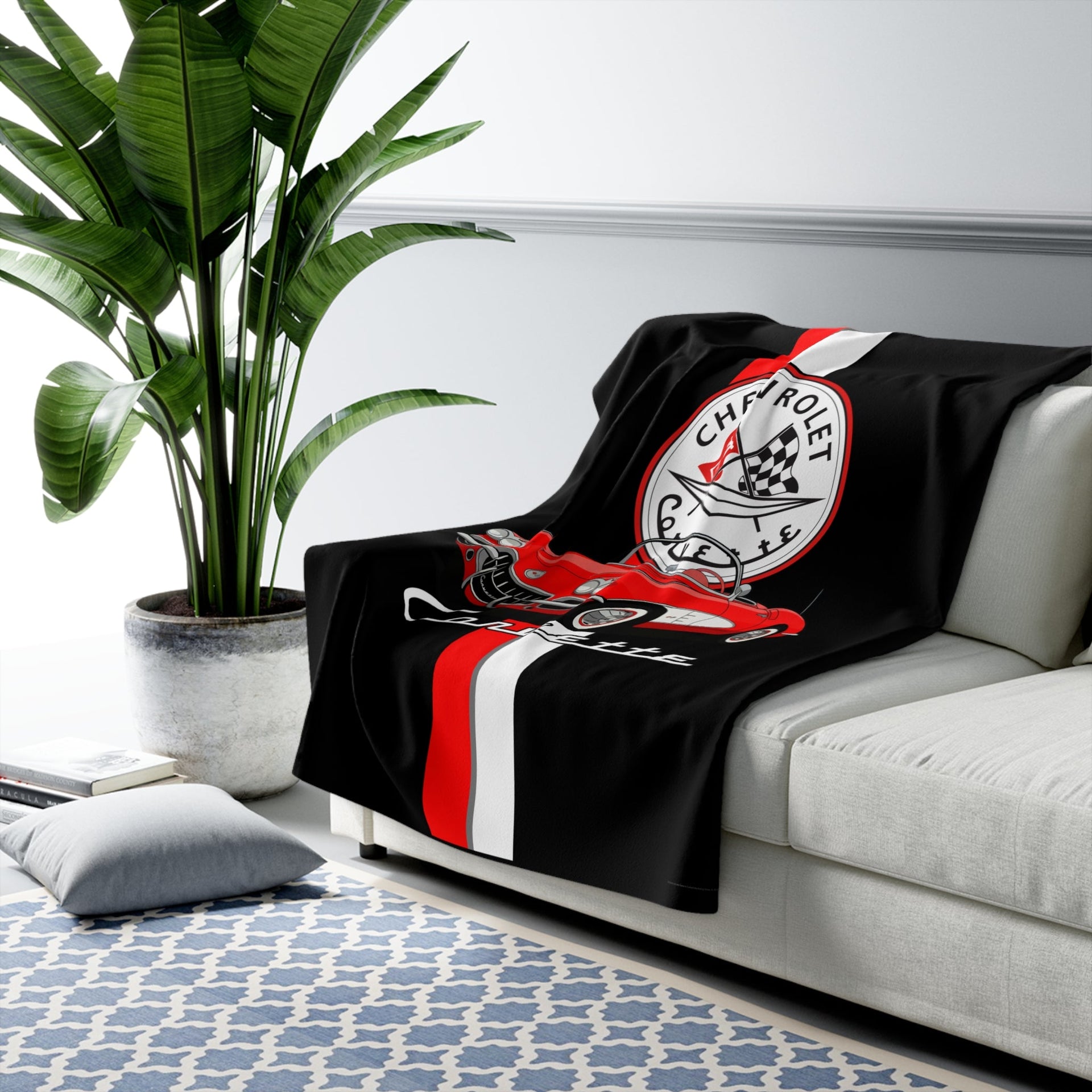 Celebrate the thrill of the drive with this Legends of the Road sherpa fleece blanket, featuring a classic CC1 Corvette Vertical Stripe Emblem. This blanket is a true statement piece for any enthusiast’s home, office, or garage. Measuring a generous 50 x 60 inches, this ultra-soft sherpa fleece blanket is perfect for cool, crisp days and cozy nights. Ideal for the Corvette fan or as a special treat, this blanket exudes a sporty and vintage vibe, making it a perfect addition to any collection. Perfect for displaying at car shows, race events, or as a gift for car enthusiast.