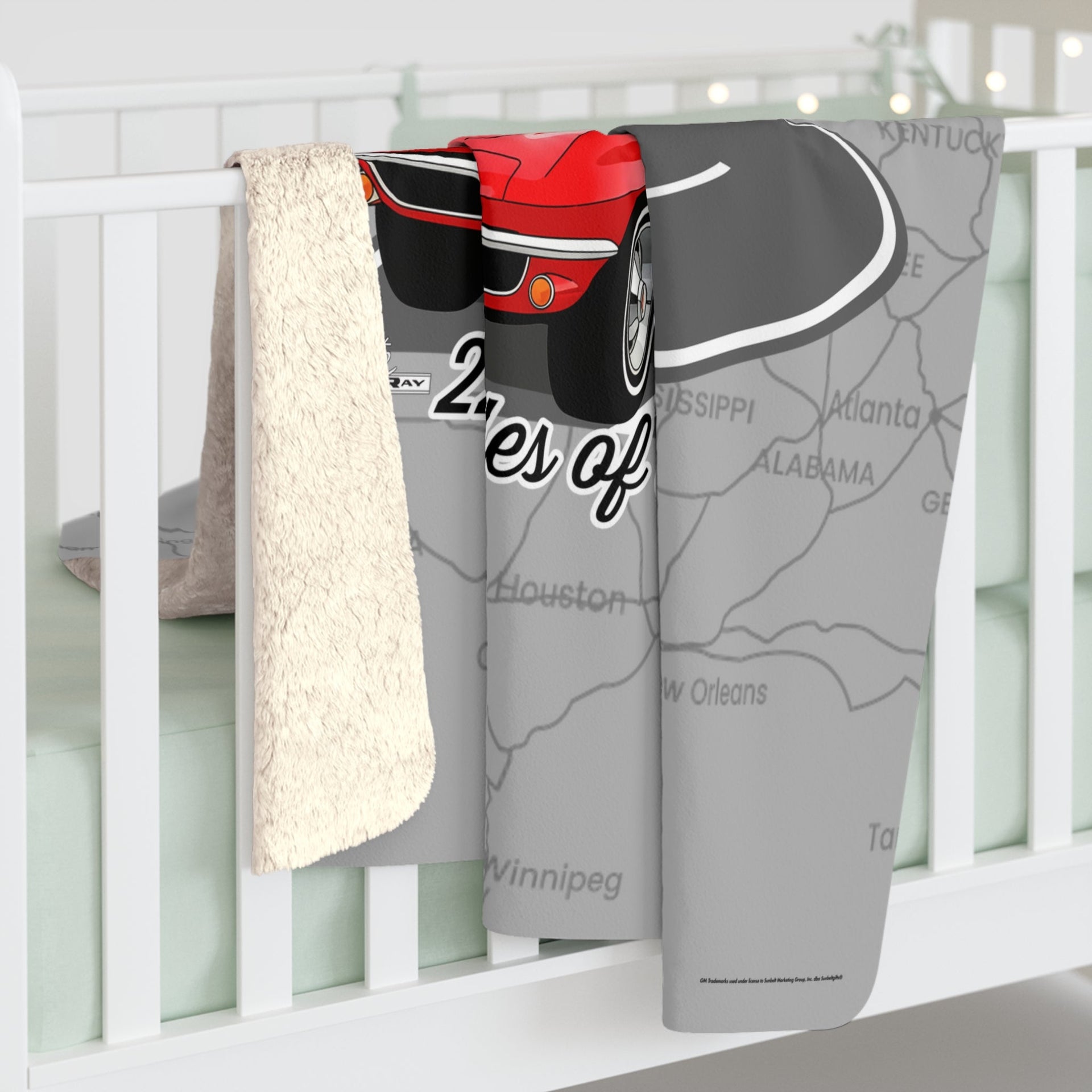 C2 Corvette Route 66 100th Anniversary Sherpa Blanket – Legends of the Road (50" x 60"), Perfect for the Corvette Fan