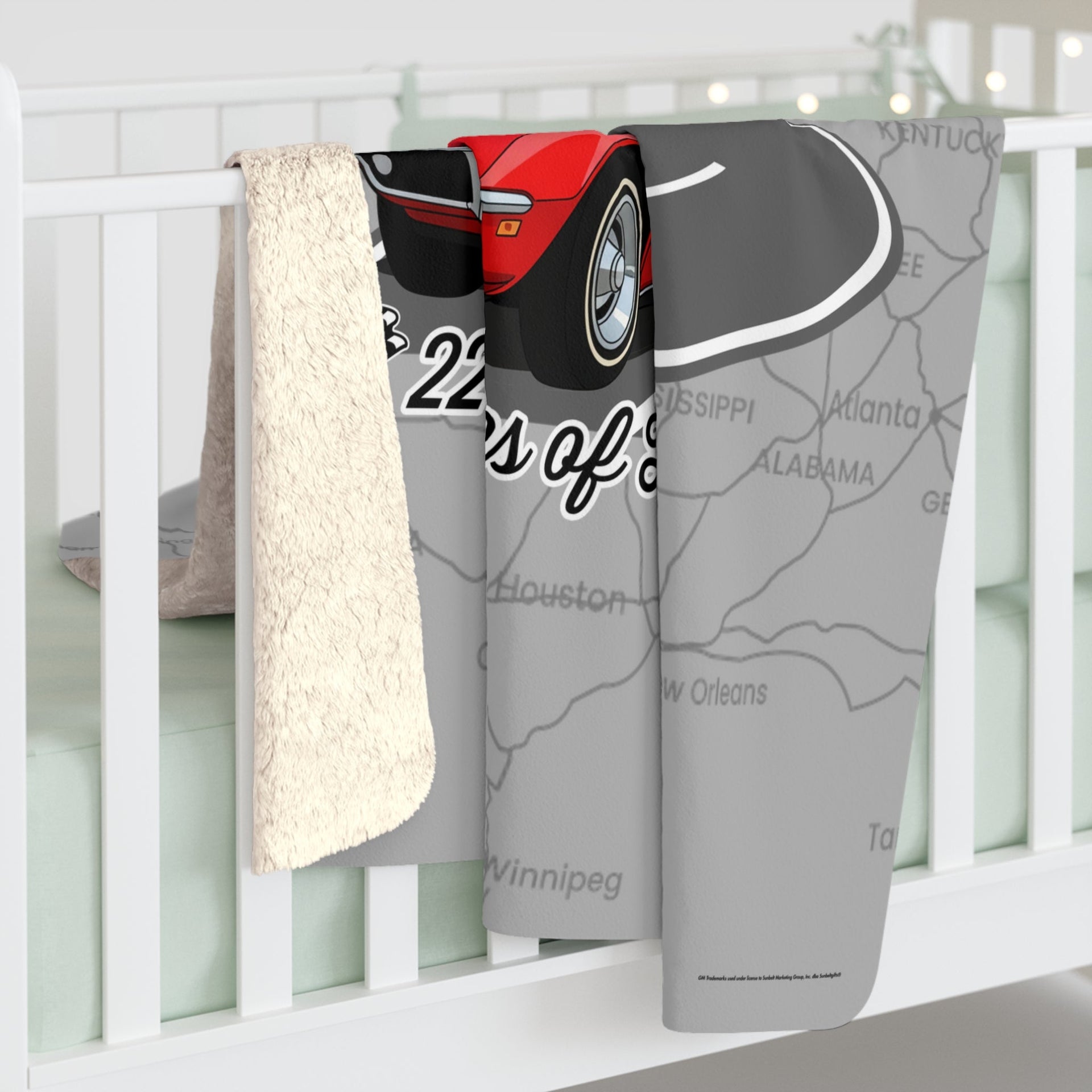 Wrap yourself in the spirit of the open road. This ultra-soft Sherpa blanket celebrates the 100th anniversary of Route 66 with exclusive artwork featuring a classic red C3 Corvette, the iconic Route 66 shield, and vintage highway signs. Whether you're lounging at home, tailgating at a car show, or gifting a fellow enthusiast, this blanket delivers comfort, nostalgia, and collector-grade style.