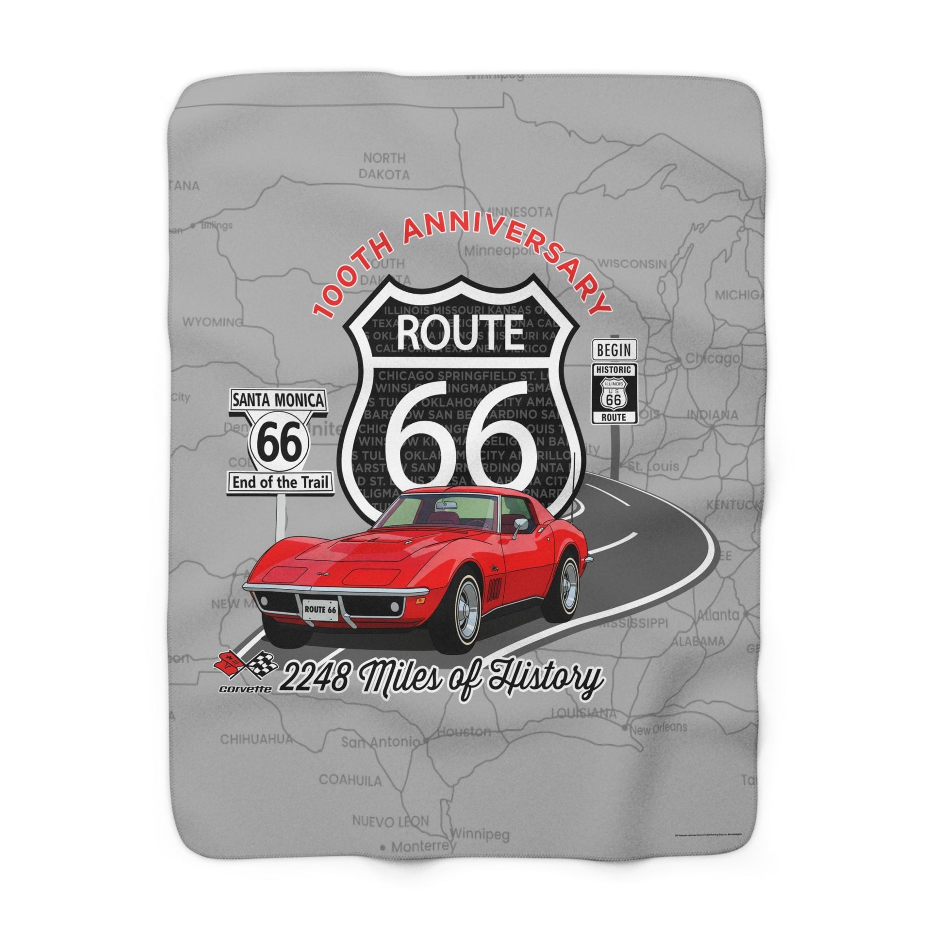 C3 Corvette Route 66 100th Anniversary Sherpa Blanket – Legends of the Road (50" x 60"), Perfect for the Corvette Fan