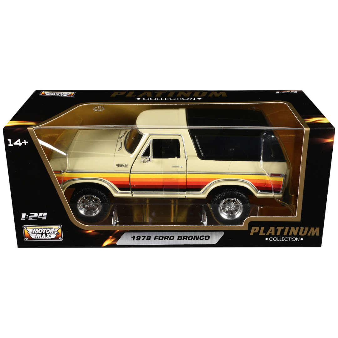 Brand new 1/24 scale diecast car model of 1978 Ford Bronco Custom Cream with Stripes and Black Top "Platinum Collection" Series diecast model car by Motormax.