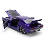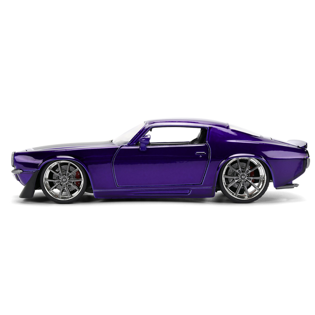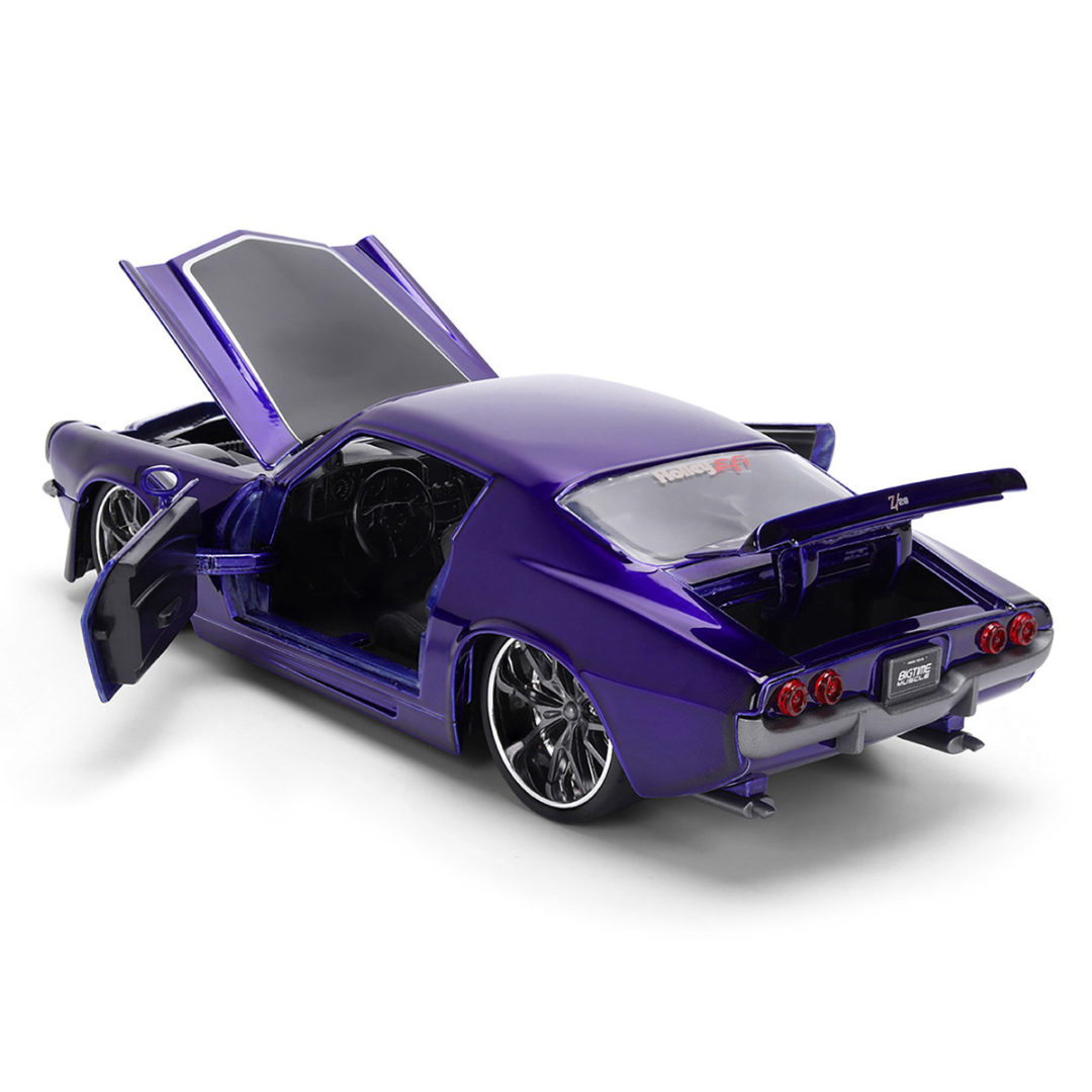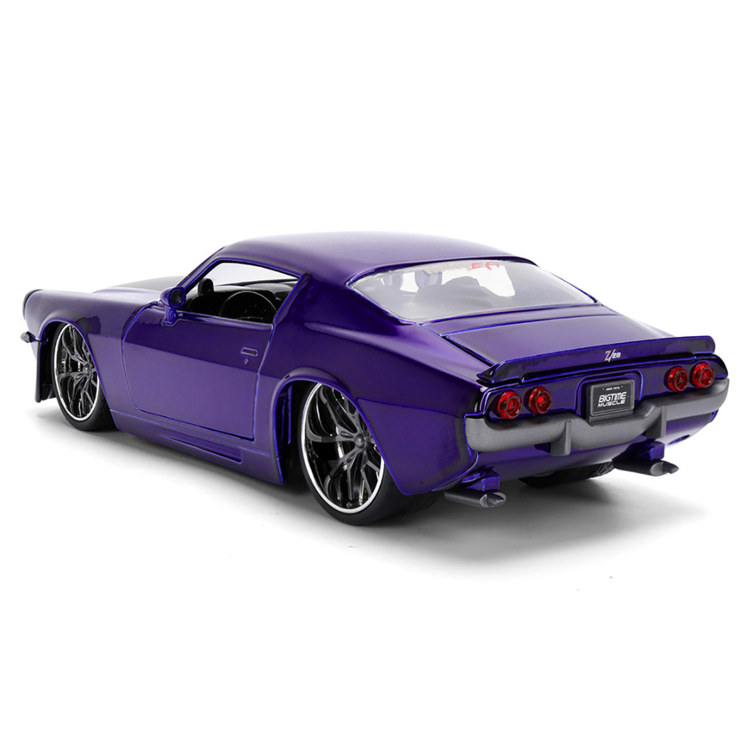 Brand new 1/24 scale diecast car model of 1971 Chevrolet Camaro Z/28 Purple Metallic with Black Hood "Bigtime Muscle" Series diecast model car by Jada.