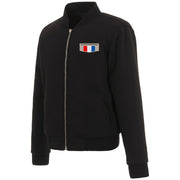 Designed with a full zip front closure and finished with rib knit collar, cuffs, and waistband, this jacket blends classic styling with everyday comfort. Proudly assembled in the USA, it delivers quality craftsmanship and timeless appeal.