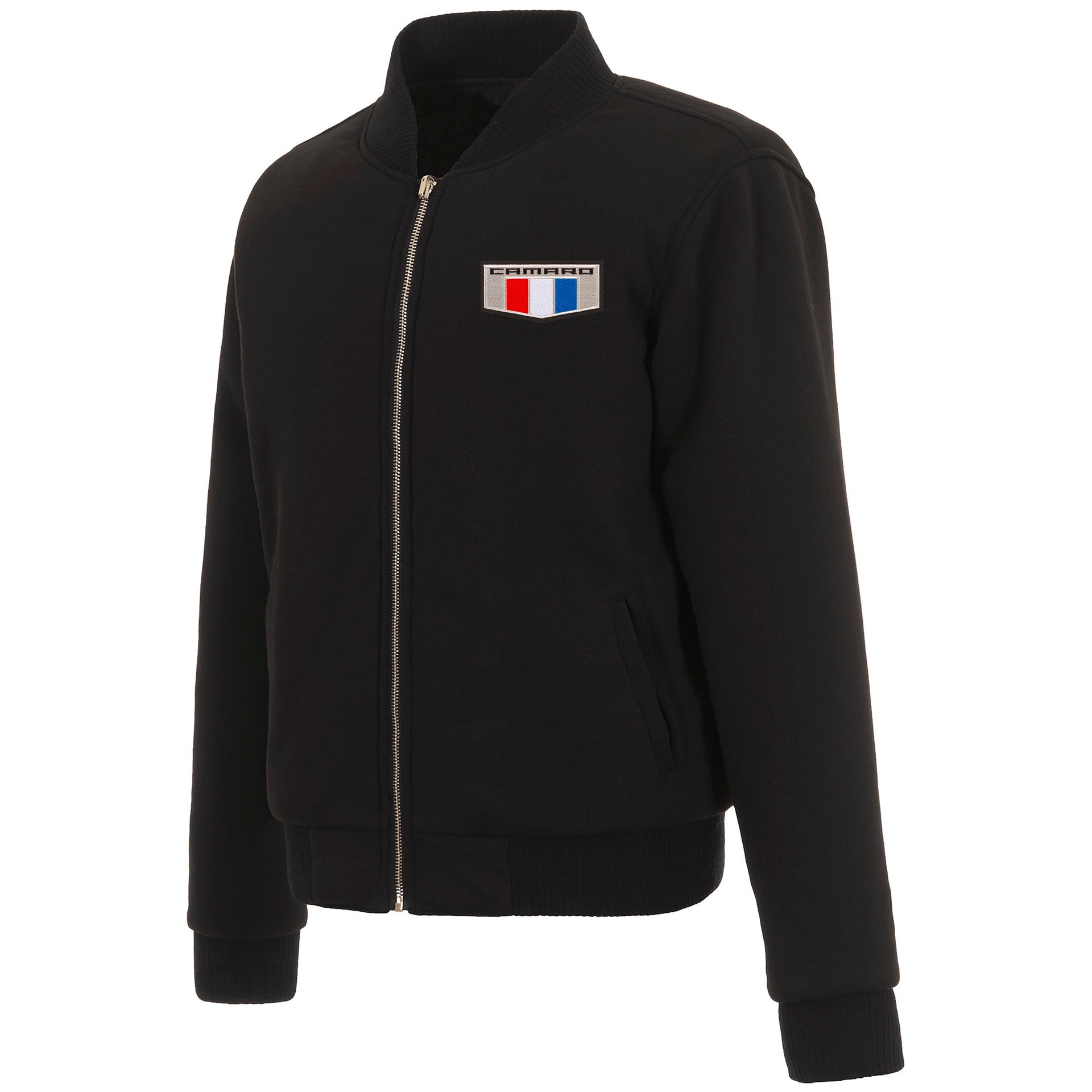 Stay warm while showing your Camaro pride with the Camaro Ladies Reversible Fleece Jacket in black. Made from 100% fleece for softness and comfort, this jacket reverses to a sleek nylon lining, offering two styles in one. Embroidered appliqué Camaro logos add authentic detail, making it a must-have for enthusiasts.
