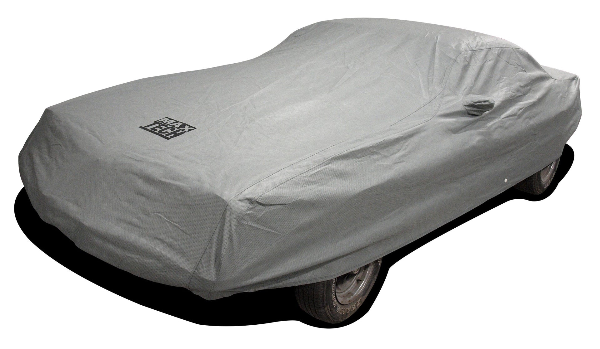 - But protection doesn't mean suffocation. The MaxTech Car Cover is breathable, blocking out moisture, dirt, and pollutants, yet allowing air to circulate, preventing mold and mildew. Presented in a sleek gray finish, each cover also comes with a handy storage bag, a durable tie-down cable, and a lock to keep it secure.