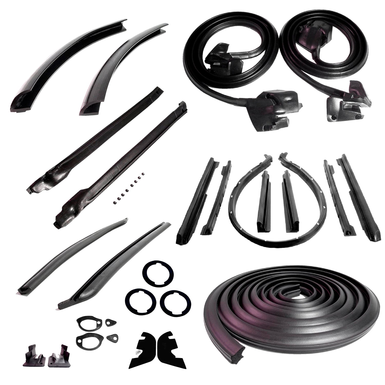 The SUPERsoft RK 2003-126 is expertly designed for the 1970 Chevrolet Chevelle, a masterpiece commonly referred to as the Convertible Master Kit or Weather Seal Kit. This comprehensive kit includes door seals, roof-rail seals, trunk seal, and more, each crafted for precision and a perfect fit. Featuring robust door lock pillar seals and durable inner splash flaps, this kit ensures your vehicle remains protected from the elements while maintaining a sleek, polished appearance. Installing these components is straightforward—each part is tailored for ease, making your restoration project a breeze. Built for both style and resilience, the RK 2003-126 not only enhances your car's aesthetic but also its longevity. The high-quality materials promise durability, ensuring your investment is worthwhile. Ready to transform your classic ride? Trust in the quality of SUPERsoft and experience the difference. Plus, with our platinum 30-year warranty, you can enjoy peace of mind knowing your purchase is protected by our "No Hassle" guarantee. Upgrade your Chevelle today and drive with confidence!