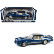 Brand new 1/18 scale diecast car model of 1980 Chevrolet Camaro Z28 with T-Tops Dark Blue Metallic with Stripes and Light Gray Interior diecast model car by Greenlight.