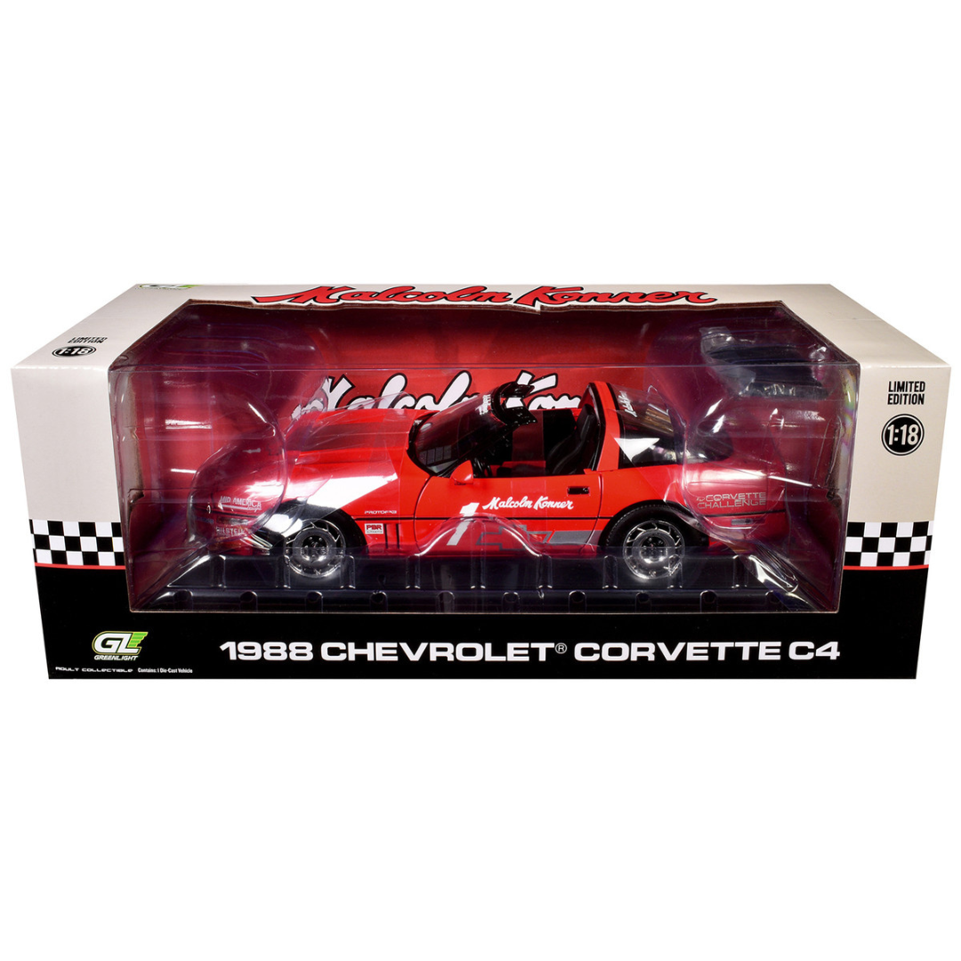 Brand new 1/18 scale diecast car model of 1988 Chevrolet Corvette C4 #1 Malcolm Konner "Corvette Challenge Race Car" Red with Black Top diecast model car by Greenlight.
