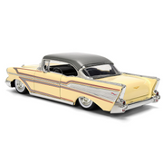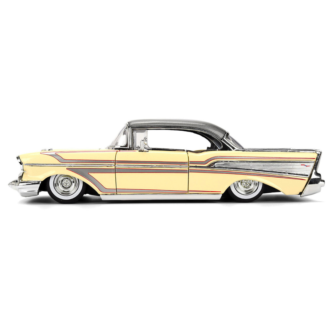1957 Chevrolet Bel Air Cream with Graphics and Gray Metallic Top "Bigtime Muscle" Series 1/24 Diecast Model Car