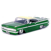 Brand new 1/24 scale diecast car model of 1959 Chevrolet Impala Lowrider Green Metallic with Cream Top and Wire Wheels "Street Low" Series diecast model car by Jada.