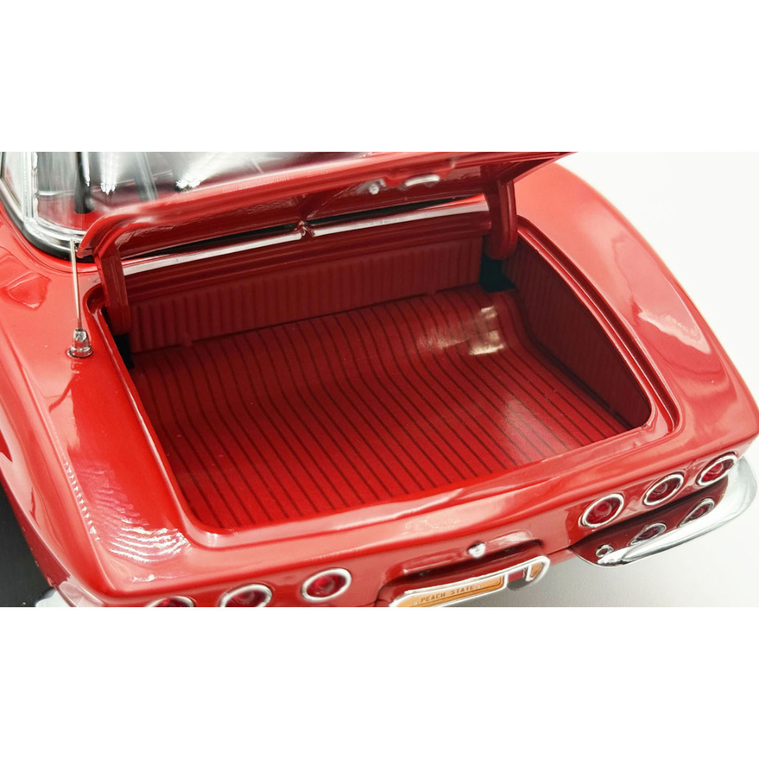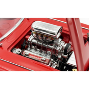 This wicked 1961 Chevrolet Corvette Gasser is decked out in a two-tone red and white paint scheme set on a set of drag style wheels and tires. Armed with a blown 238 Fuelie engine with custom headers gives this beauty all the power to take on any competitor. Open the doors to reveal a beautiful red interior with a detailed dashboard, seats and seat belts. Opening trunk and hood with a detailed chassis and poseable steering and so much more!