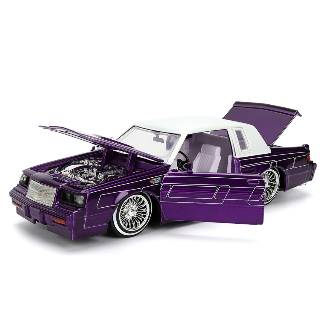 Brand new 1/24 scale diecast model car of 1987 Buick Grand National Candy Purple with Graphics and White Top and Interior "Bigtime Muscle" Series diecast car model by Jada.