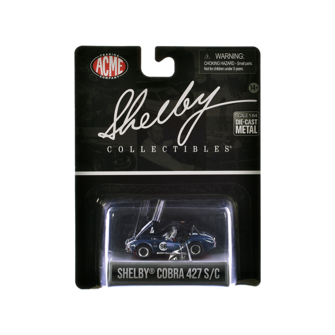 Brand new 1/64 scale diecast car model of Shelby Cobra 427 S/C #98 Blue Metallic with White Stripes "Shelby Collectibles" Series diecast model car by ACME.