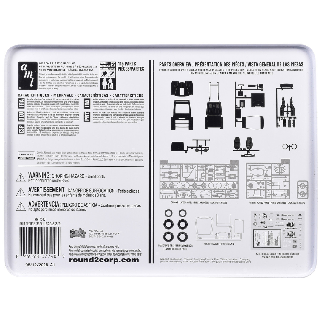 Brand new 1/25 scale plastic model kit of 1933 Willys Gasser "Ohio George" with Collectible Tin Packaging (Skill 2) 1/25 plastic model kit by AMT.