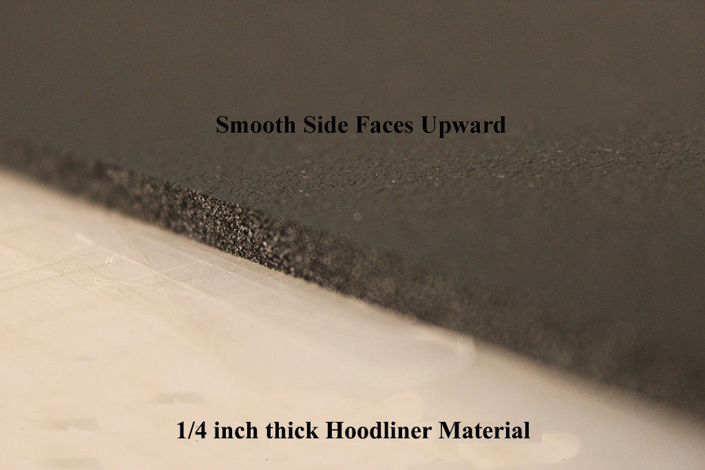 This hoodliner is fabricated from durable black rubber foam, engineered to muffle both heat and engine noise. While not OEM fiberglass, once properly adhered it creates a clean, factory-like underhood appearance.