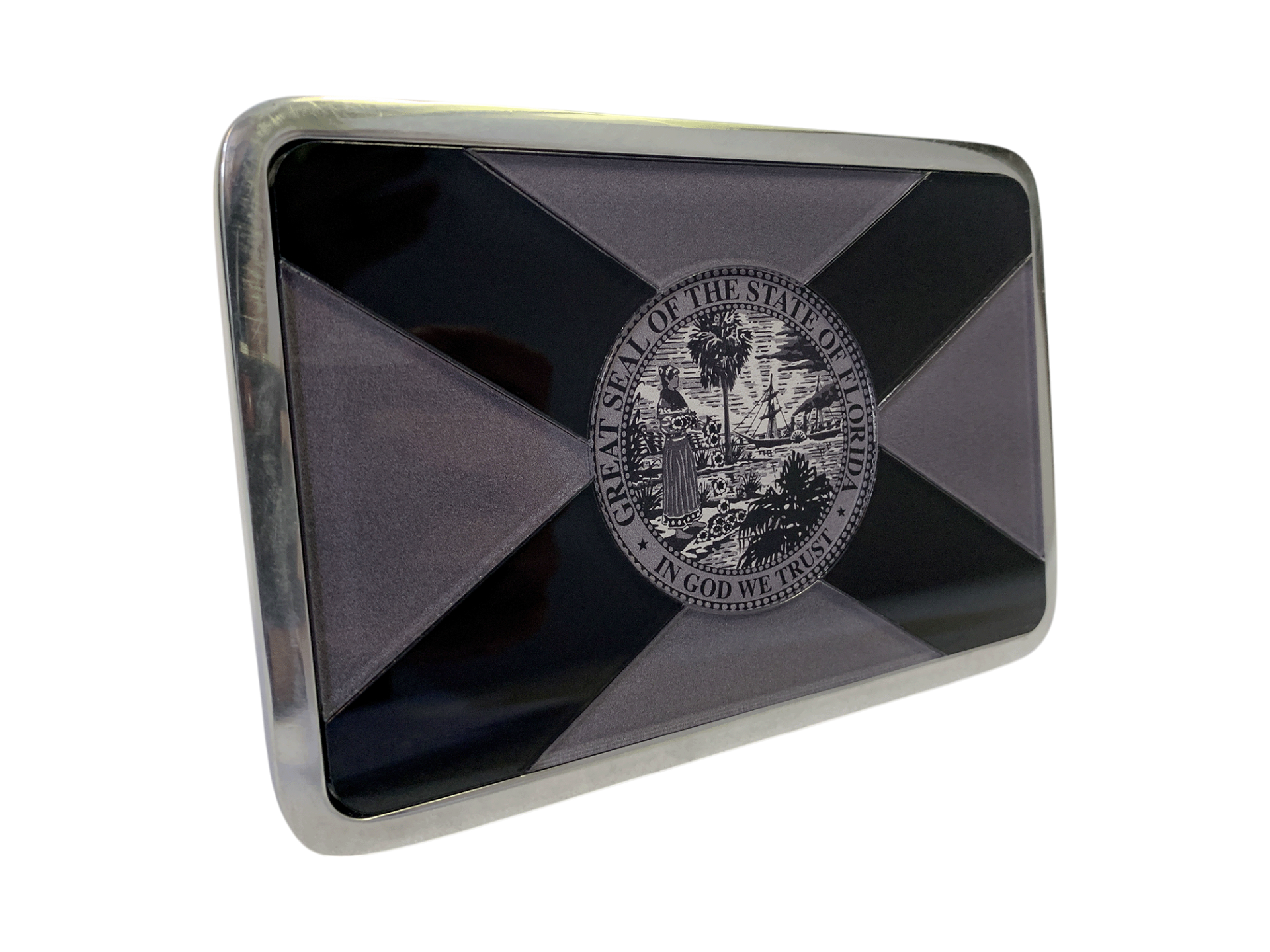 Don't settle for a dull hitch cover. Upgrade to the Blacked Out Florida Flag Hitch Plug XL and make a statement wherever you go. Order now and showcase your Florida spirit in style!