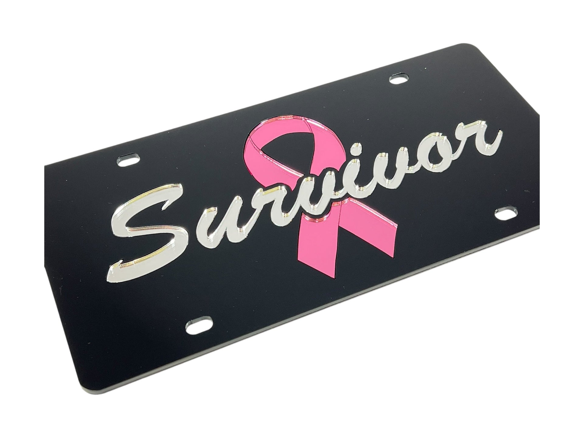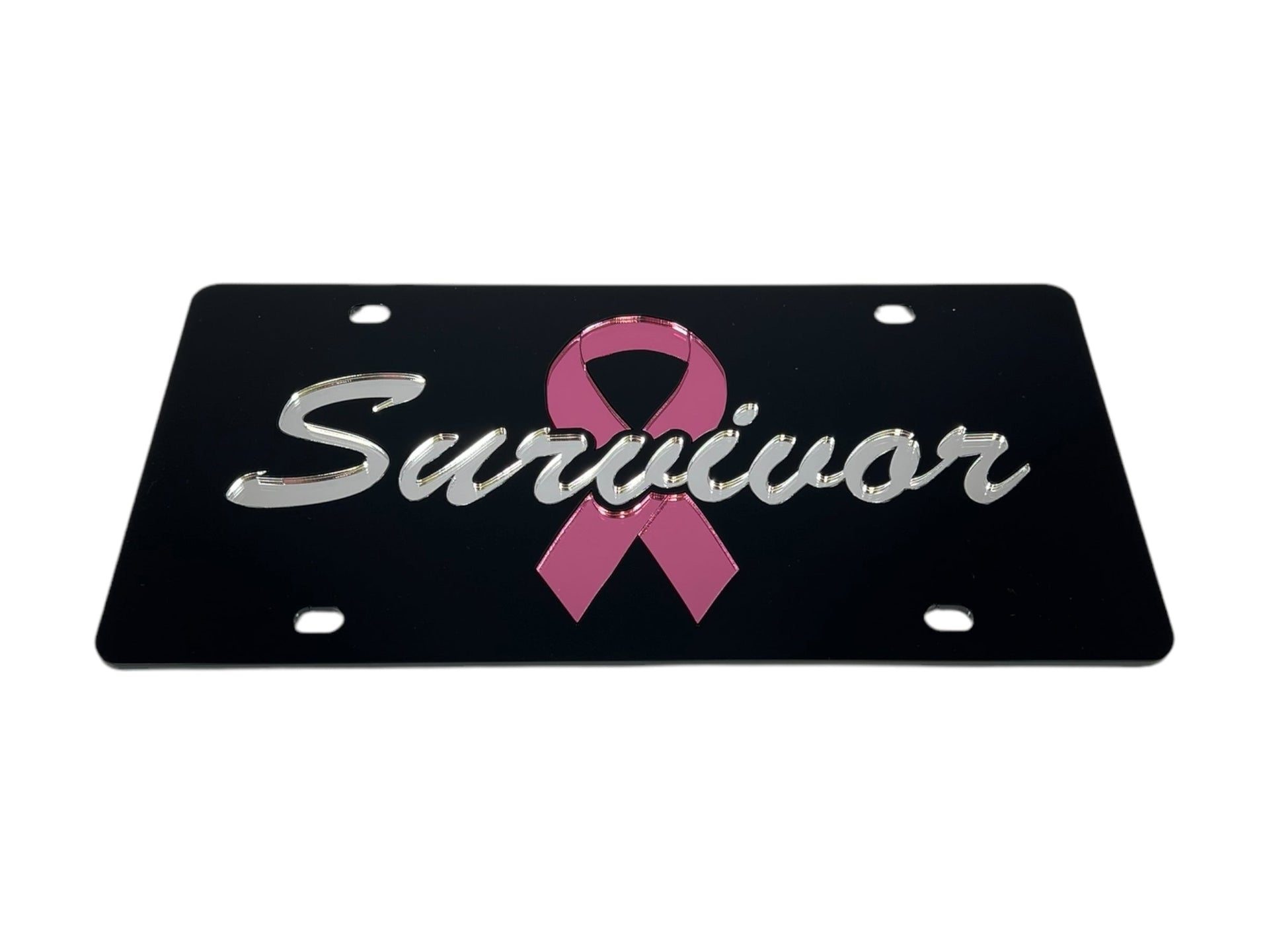 Breast Cancer Survivor Pink Ribbon Acrylic License Plate