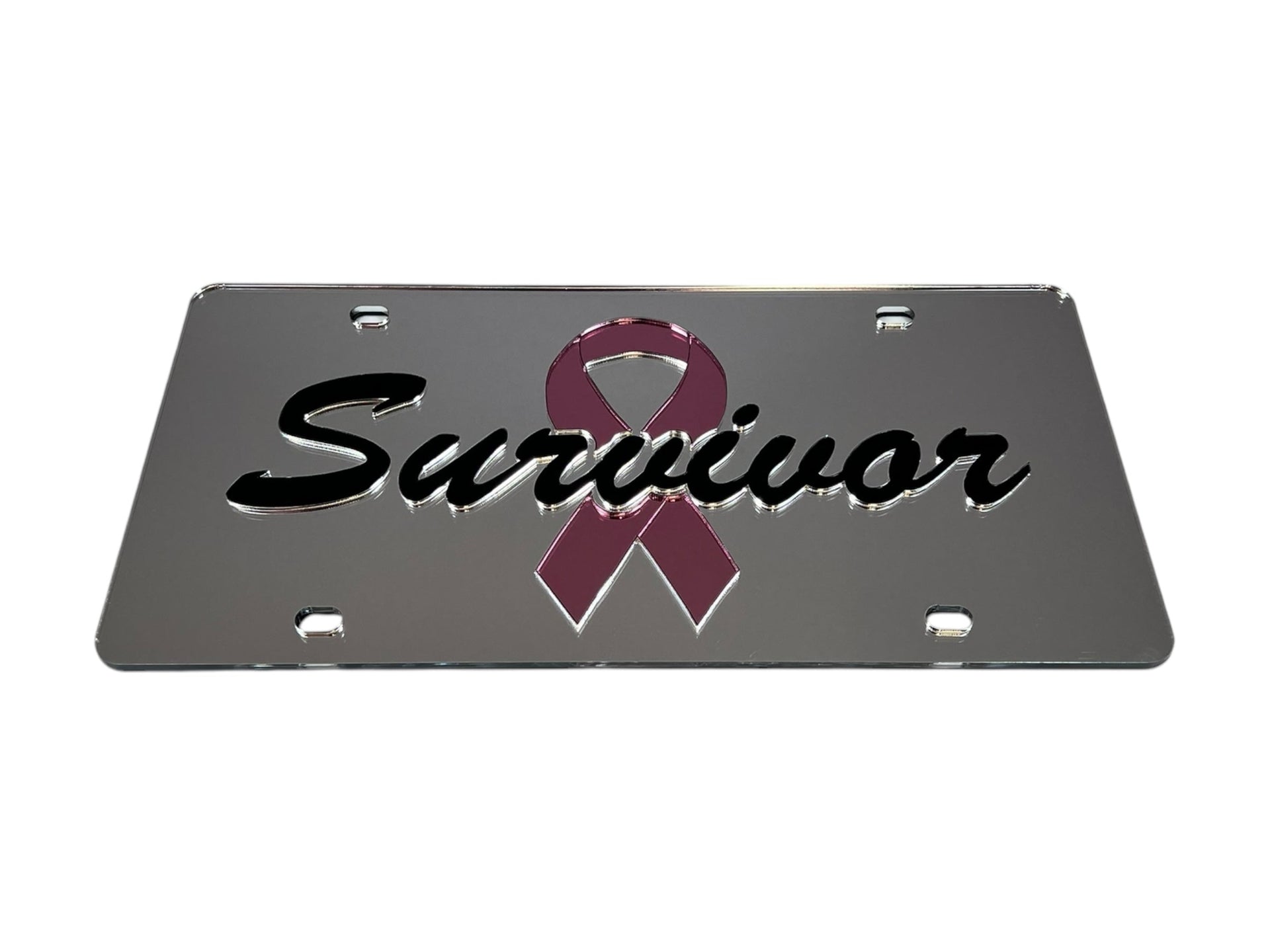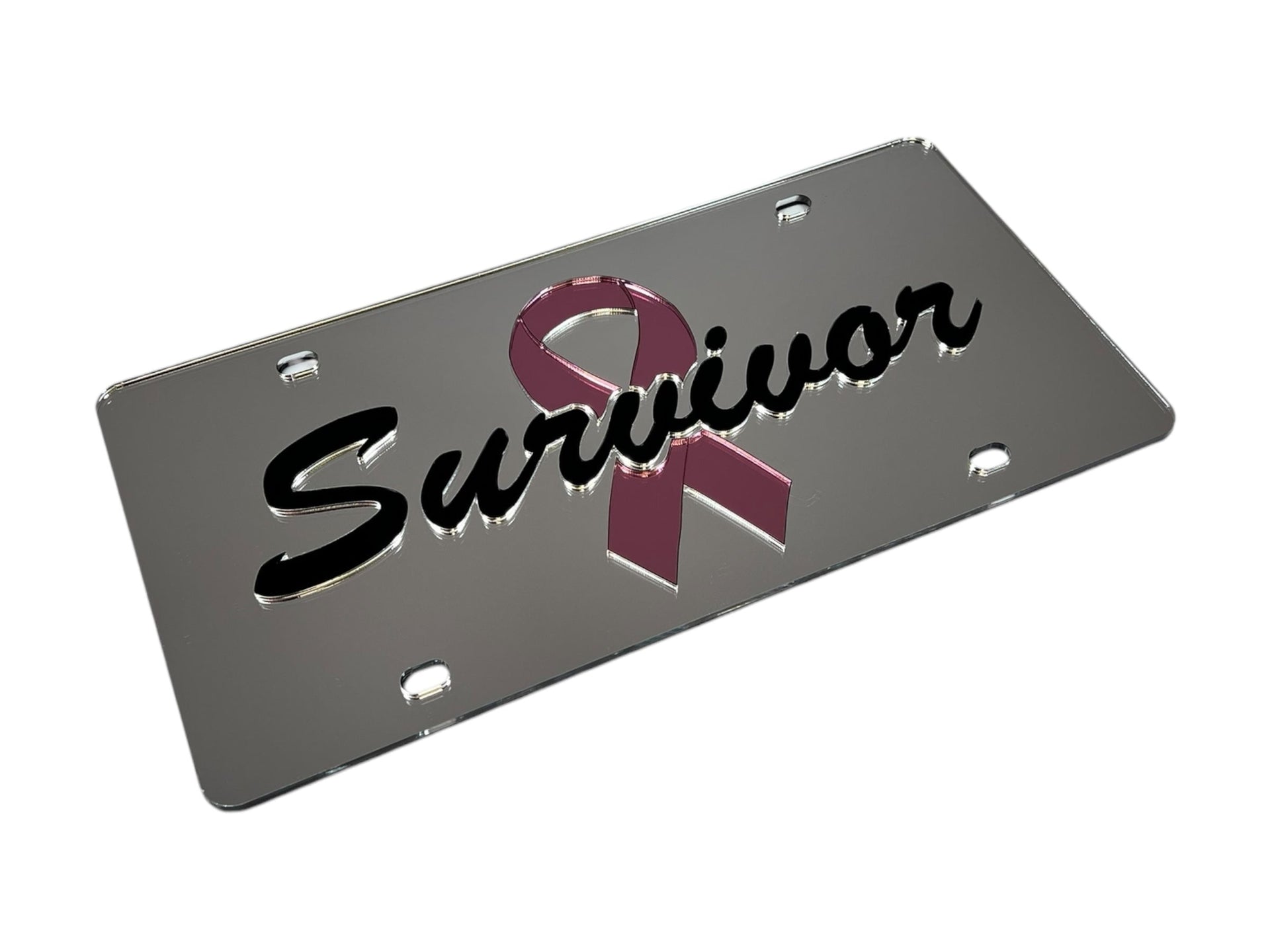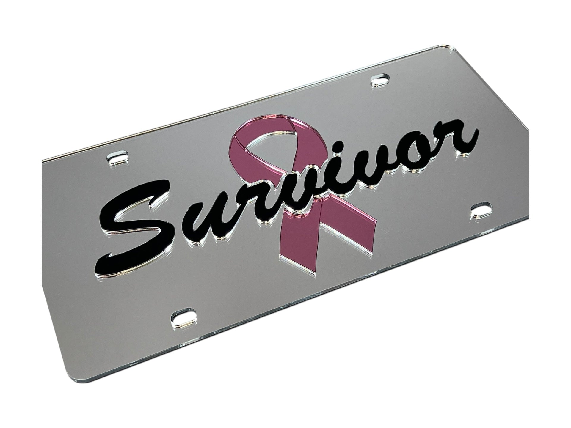 Breast Cancer Survivor Pink Ribbon Acrylic License Plate