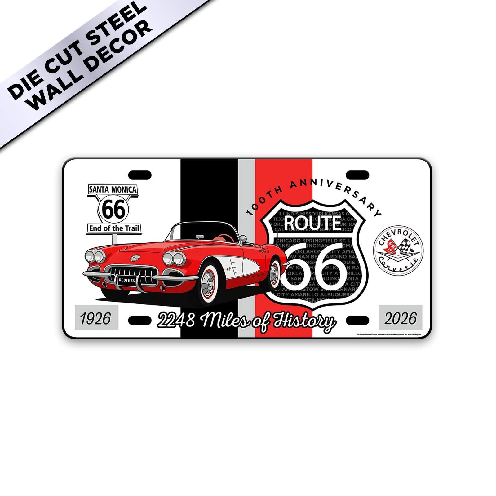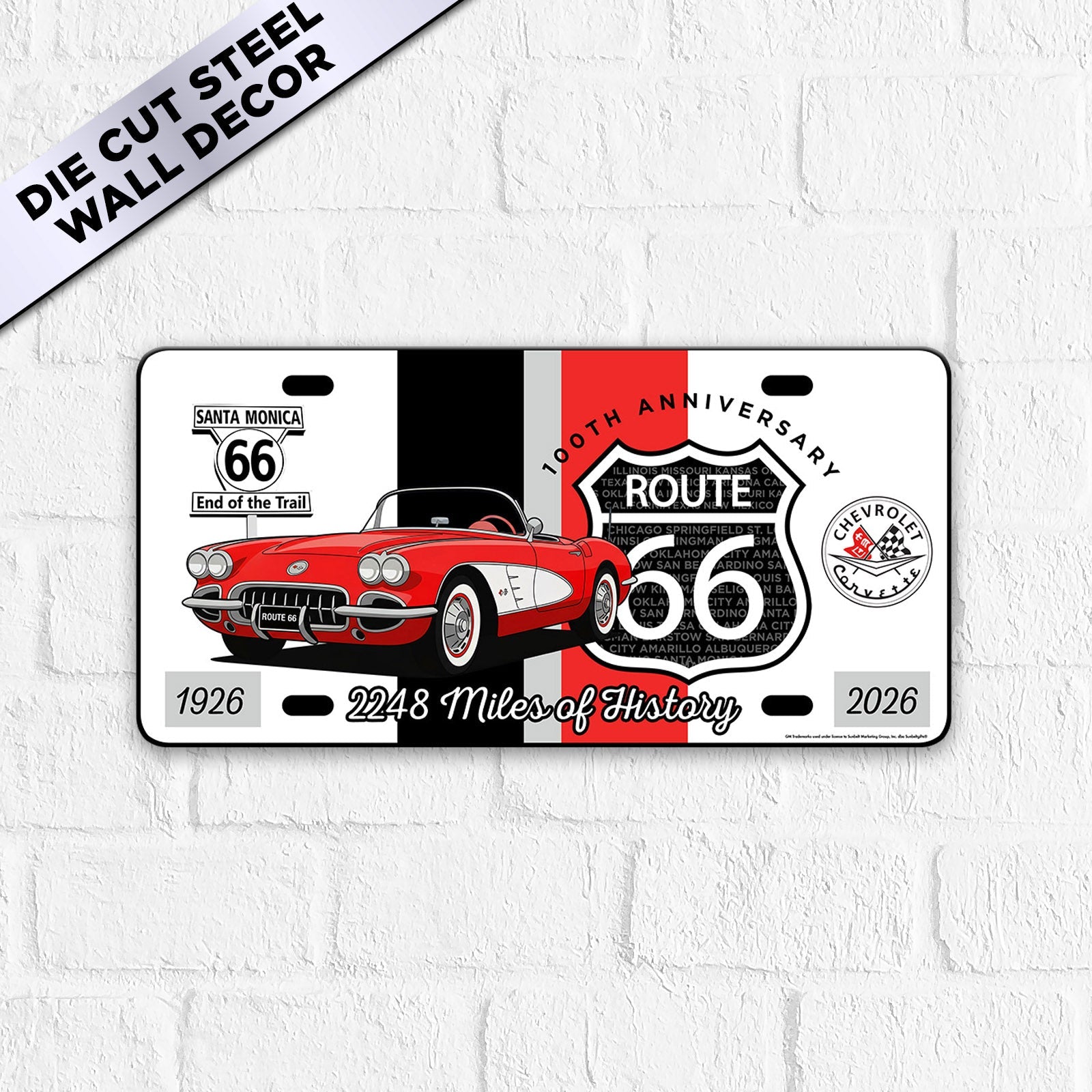 C1 Corvette Route 66 100th Anniversary 12" x 6" Wall Decor – Red & White Corvette Edition