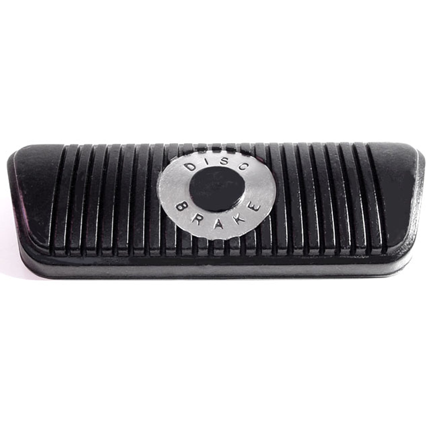 The CB 111-J Metro Moulded Parts Brake Pedal Pad is a high-quality replacement designed to enhance the functionality and appearance of your 1973 Ford Mustang with disc brakes. Measuring 5-7/16" wide, this brake pedal pad fits seamlessly and matches the original aesthetic of your classic car. The chrome ring at the center adds a stylistic touch, making it a perfect upgrade for restoring your vehicle's authentic look. Whether you’re searching for a disc brake pad, pedal rubber, or brake pedal cover, this product delivers superior performance and style. With its precision-crafted curves and ridge detailing, this pad is easy to install and designed for durability.Built specifically for models with disc brakes, this replacement pad combines an iconic design with practical features, ensuring long-lasting use. Its ribbed surface enhances traction, making it safer and more comfortable to operate your vehicle. The center chrome ring provides visual contrast while maintaining the classic Mustang aesthetic, making it both highly functional and visually appealing. This brake pedal pad is a must-have for enthusiasts seeking reliability and effortless style for their vintage Ford Mustang.This brake pedal pad is your trusted choice for restoring the look and feel of your classic Ford Mustang. It’s built to last, easy to install, and designed to enhance safety and style. Backed by Metro’s industry-leading 30-year platinum warranty, this product ensures confidence and peace of mind with every drive. Upgrade your vehicle today with Metro’s CB 111-J brake pedal pad, a blend of timeless design and reliable performance you can trust. Make your purchase now and bring a fresh, classic touch to your Mustang!