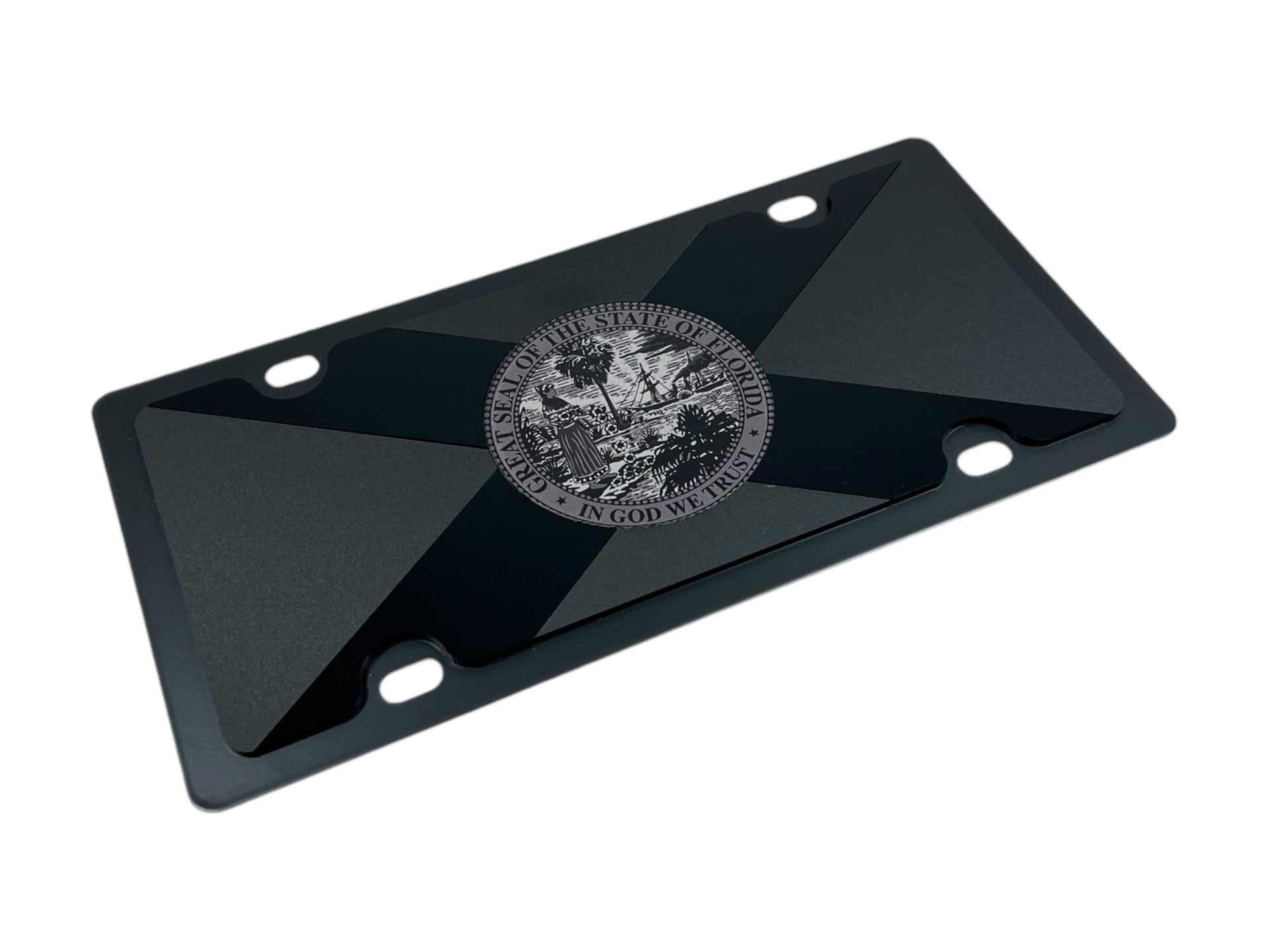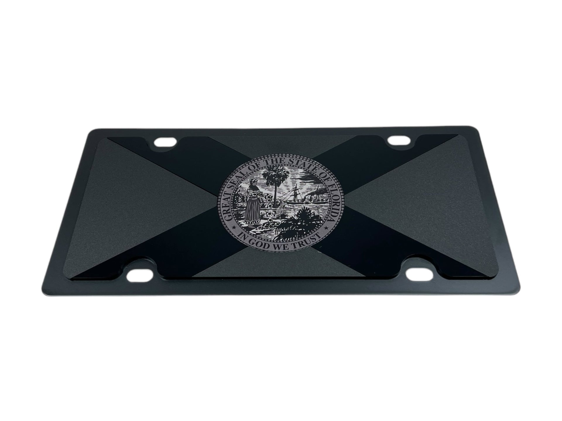 Florida State Flag Blacked Out Carbon Steel License Plate