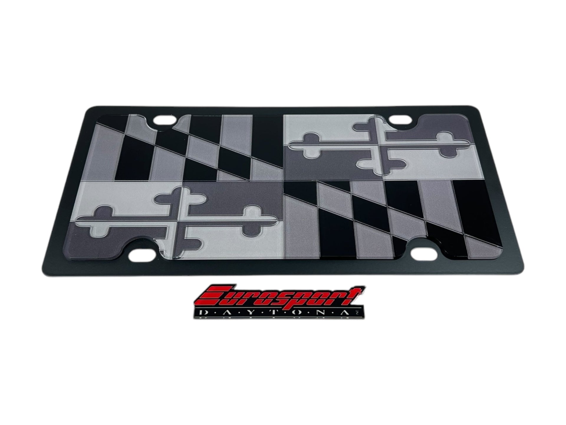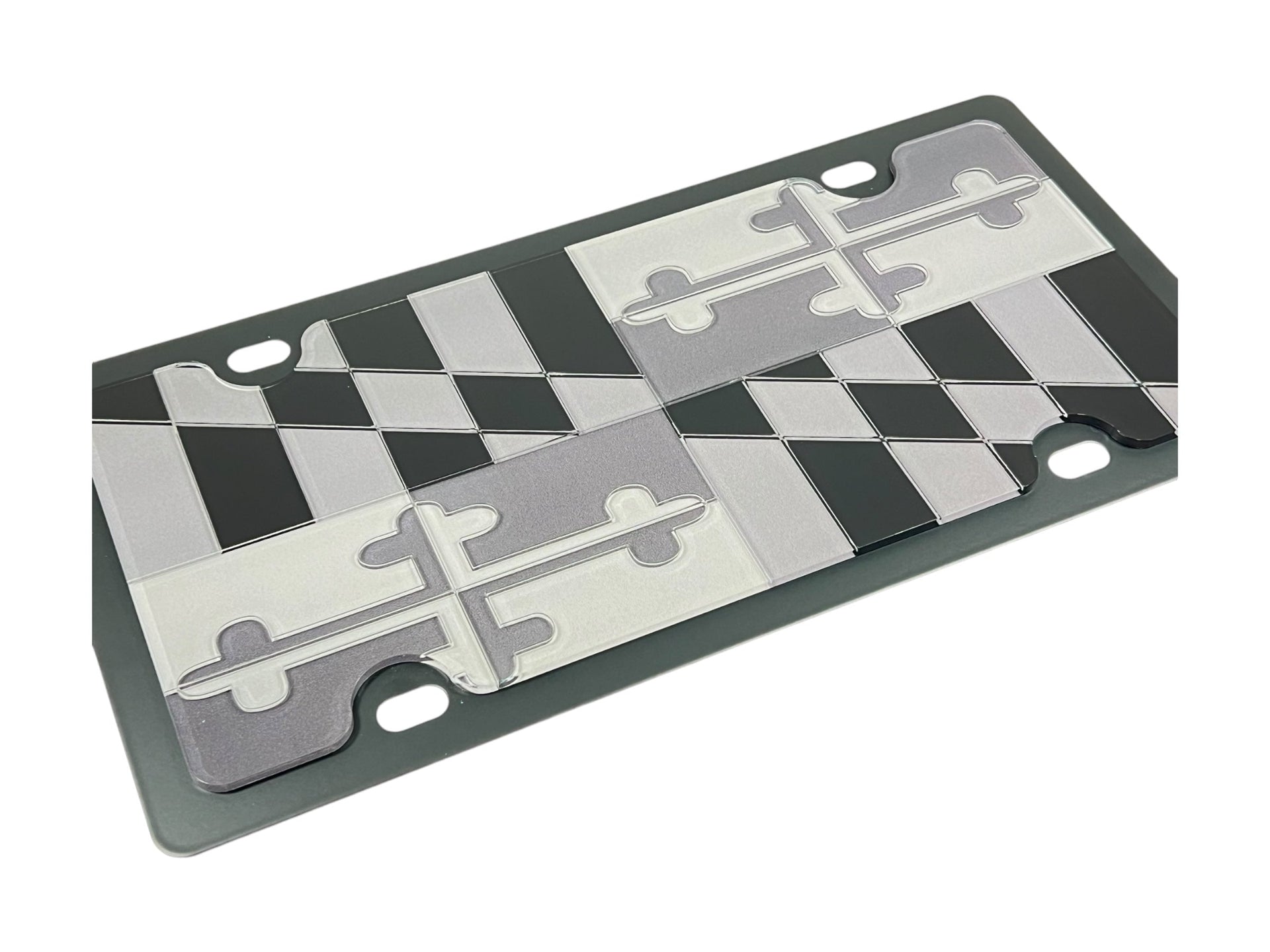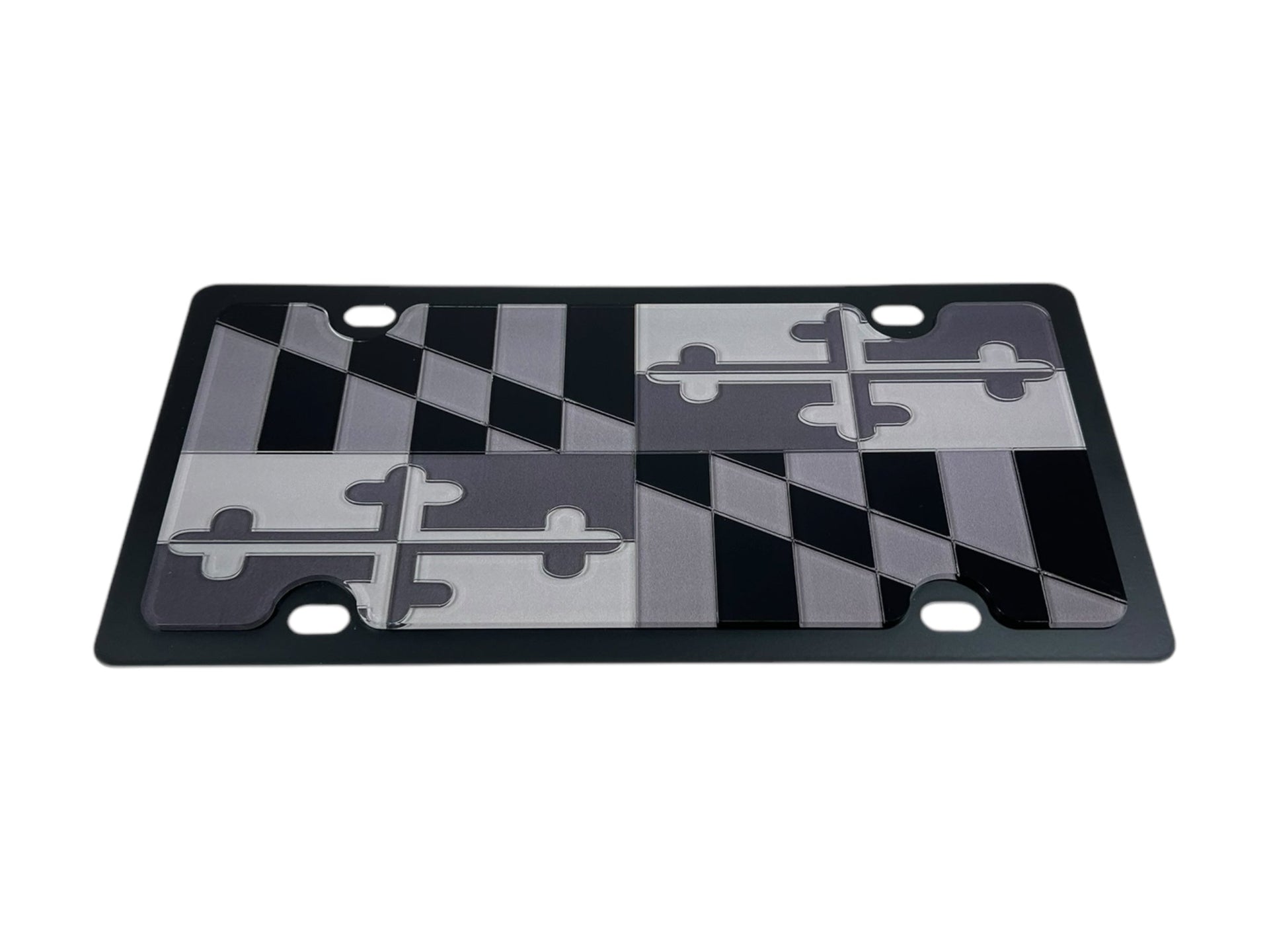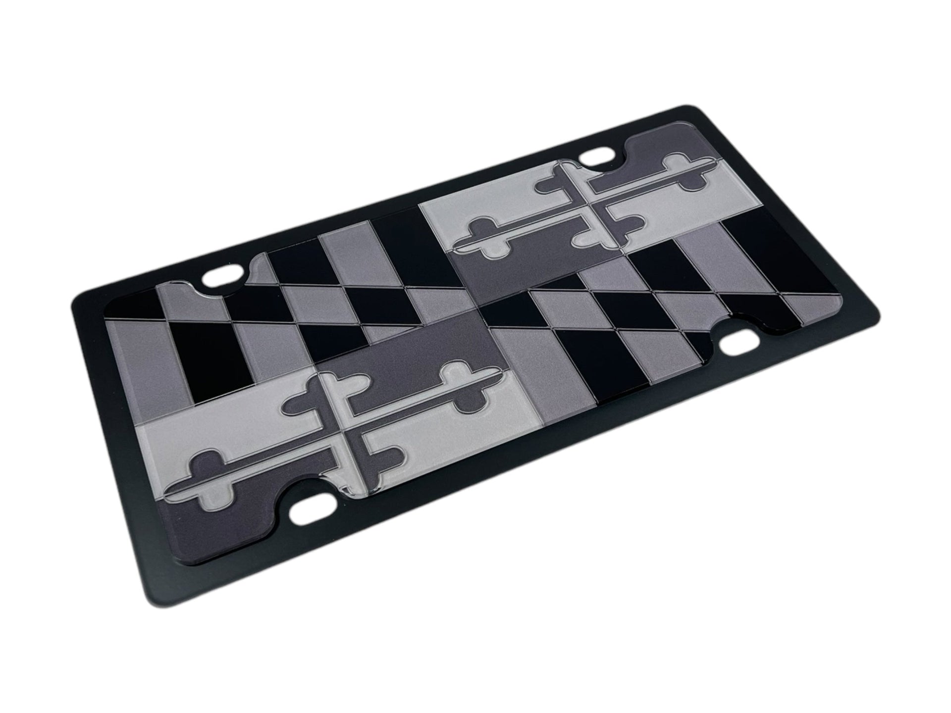 Maryland State Flag Blacked Out Carbon Steel License Plate