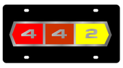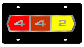 Constructed from high-quality carbon steel, this license plate combines durability with style. It resists weather and wear, ensuring it remains a striking addition to your vehicle or garage for years to come. The striking design features the unmistakable 442 emblem, making it a perfect accessory for Oldsmobile enthusiasts and collectors alike.