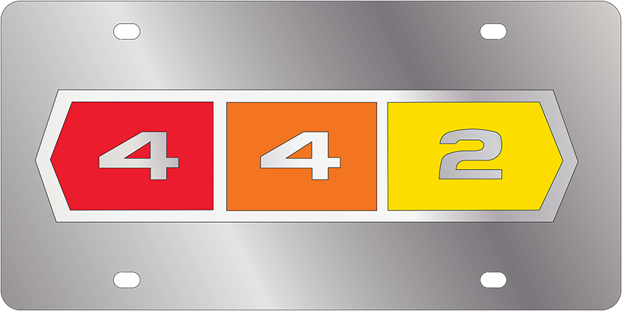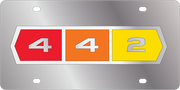 Elevate your vehicle's style with the Oldsmobile 442 Stainless Steel License Plate. This premium accessory showcases your love for classic American muscle cars while providing a durable solution for displaying your license plate. Crafted from high-quality stainless steel, this license plate is built to withstand the elements, ensuring it maintains its polished finish for years to come.