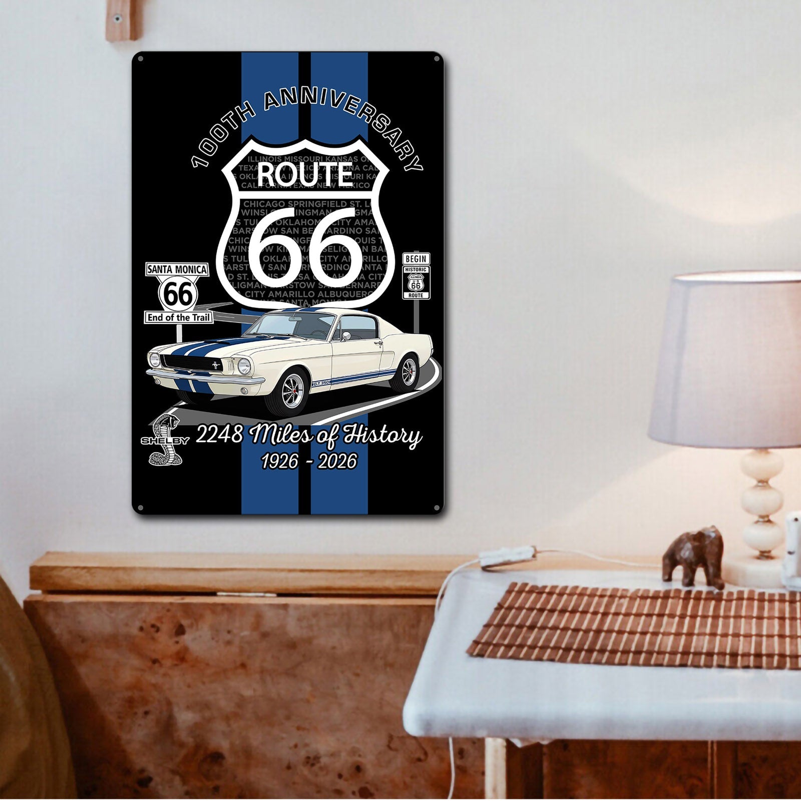 Route 66 100th Anniversary Metal Sign – Shelby GT350 Edition (12 x 18 inches)