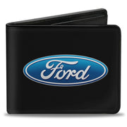 This awesome men's bi-fold wallet is made from premium vegan leather. It measures 4.0x3.5x0.5 Inches, and features the standard billfold, 5 card slots, and windowed ID holder. The logos are applied using advanced printing technologies, so the wallet will still look good after years of hard use. This product is made by Buckle-Down, Inc. and Officially Licensed by Ford.