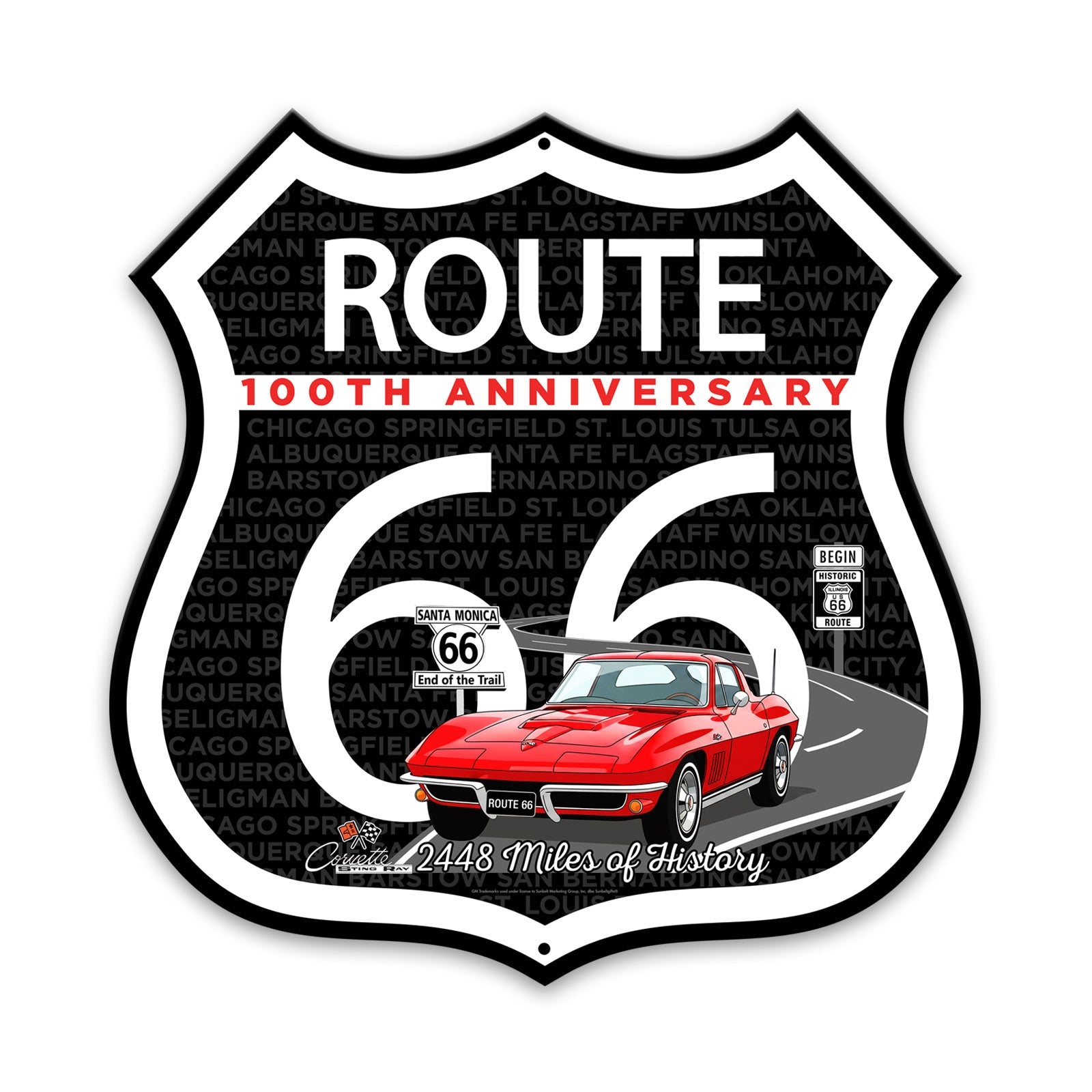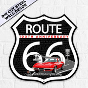 C2 Corvette Route 66 100th Anniversary Die-Cut Shield – Red Convertible Edition-Available in 2 Sizes