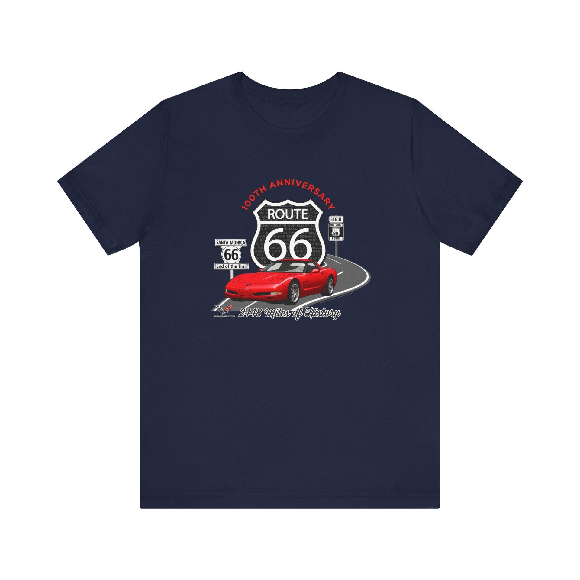 C5 Corvette Route 66 100th Anniversary Short Sleeve Tee – Legends of the Road, Perfect for the Corvette Fan