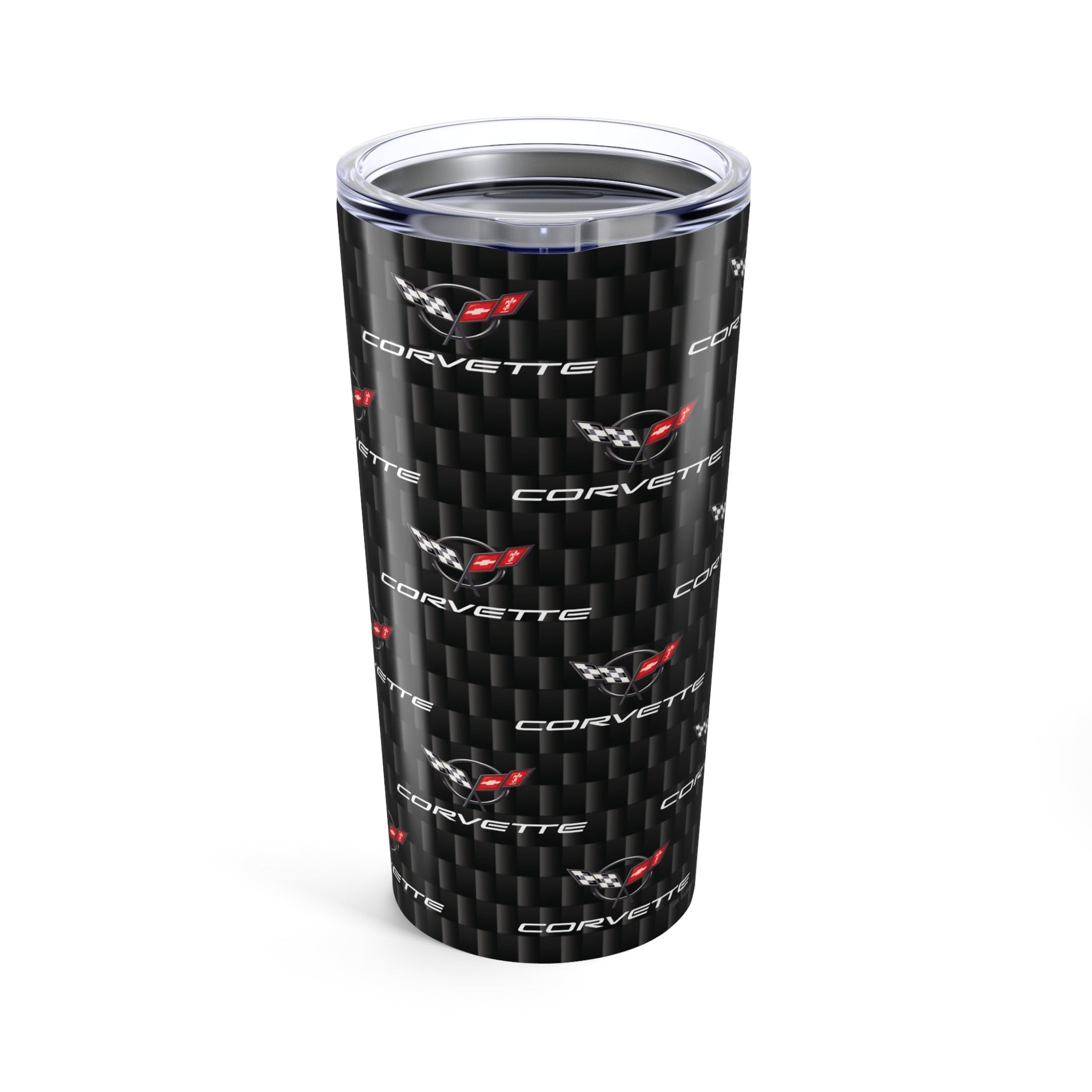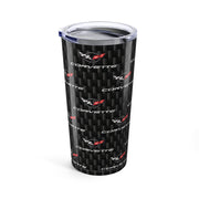 Corvette C5 Logo Repeat Pattern Carbon Tumbler 20oz | Retro Car Lover Travel Cup, Gift for Him, Car Enthusiast, Father's Day, Road Trip