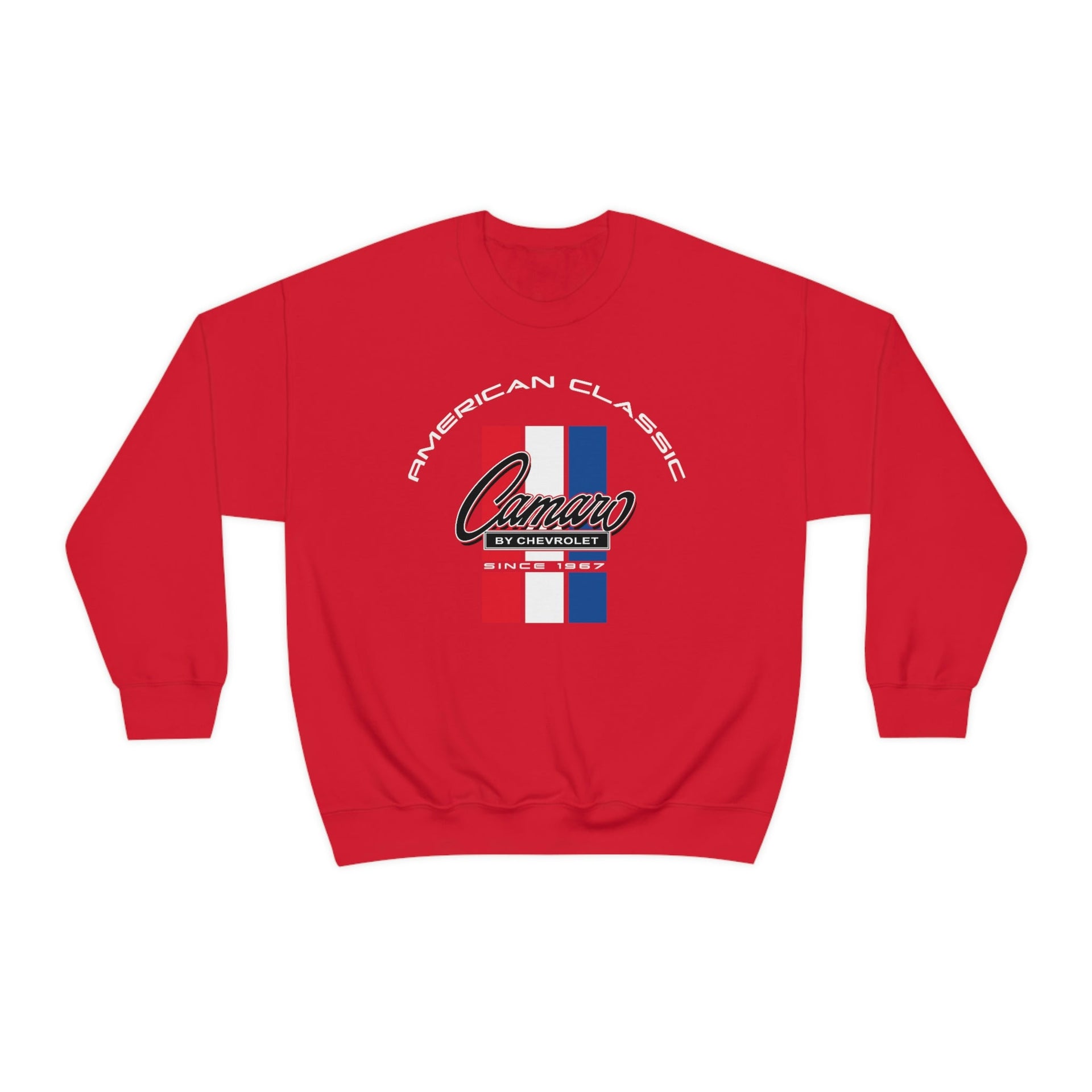 Ideal for any situation, this Camaro 1st Gen tricolor heavy blend crewneck sweatshirt is pure comfort. Chilly days are ahead so get ready to be warm in style! Available in 4 colors with clear crisp printing. These garments are made from polyester and cotton. The collar is ribbed knit, so it retains its shape even after washing.