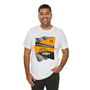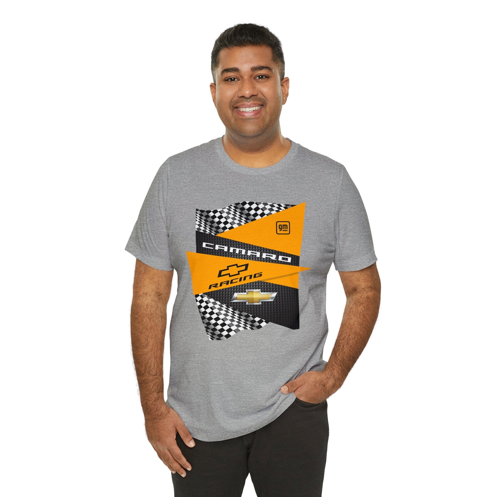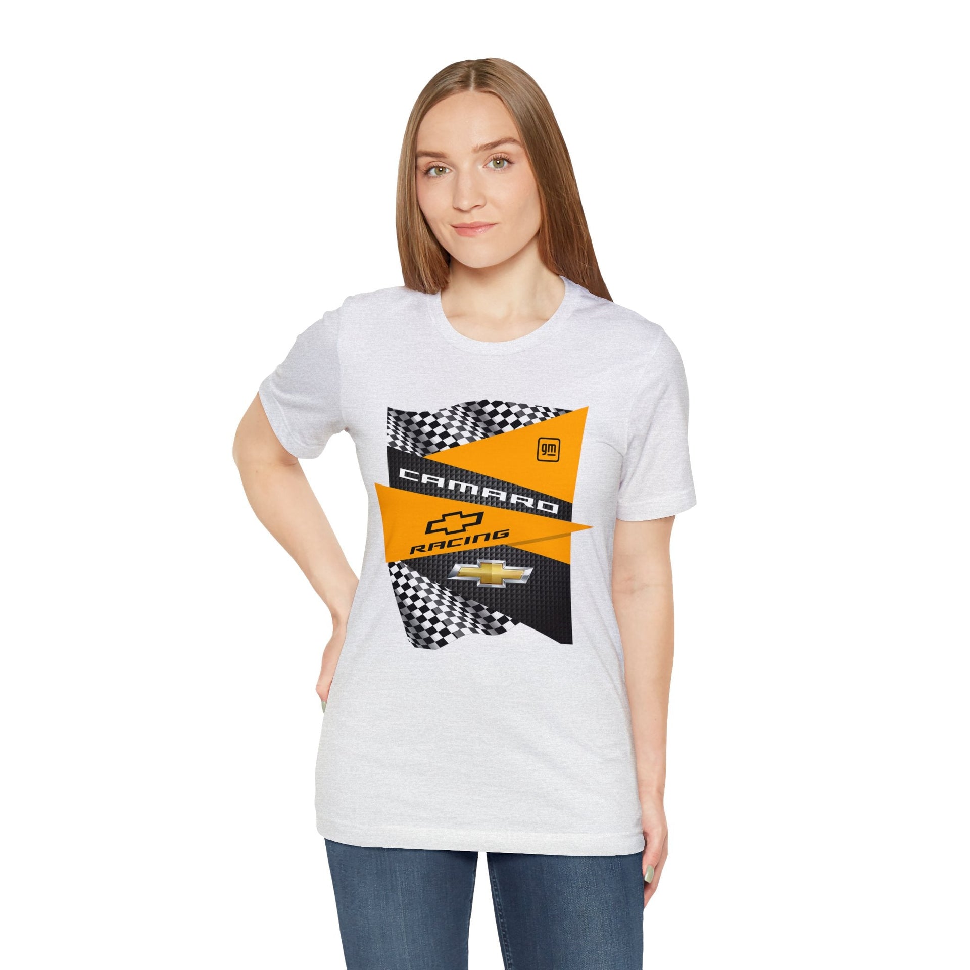 This classic Camaro Yellow Checkered Jersey Short Sleeve Tee fits like a well-loved favorite. Soft cotton and quality print make users fall in love with it over and over again. These t-shirts have-ribbed knit collars to bolster shaping. The shoulders are tapered for a better fit over time. Dual side seams hold the garment's shape for longer.