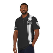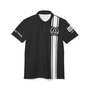 Elevate your style with the Carroll Shelby Short Sleeve Black Polo Shirt, designed for fans of iconic motorsports and automotive style. Featuring a classic 3-button placket and a pointed collar, this shirt combines timeless design with sporty elegance. The vertical black stripe on the left side adds a dynamic touch, complementing the classic Carroll Shelby Cobra logo on the chest and the Signature Logo on the left arm, symbolizing the legacy of Shelby performance.