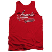 Show off your love for the Chevrolet Impala with this officially licensed tank top. Featuring a bold Classic Impala graphic on vibrant red fabric, this sleeveless design is perfect for warm weather, car shows, or everyday wear.