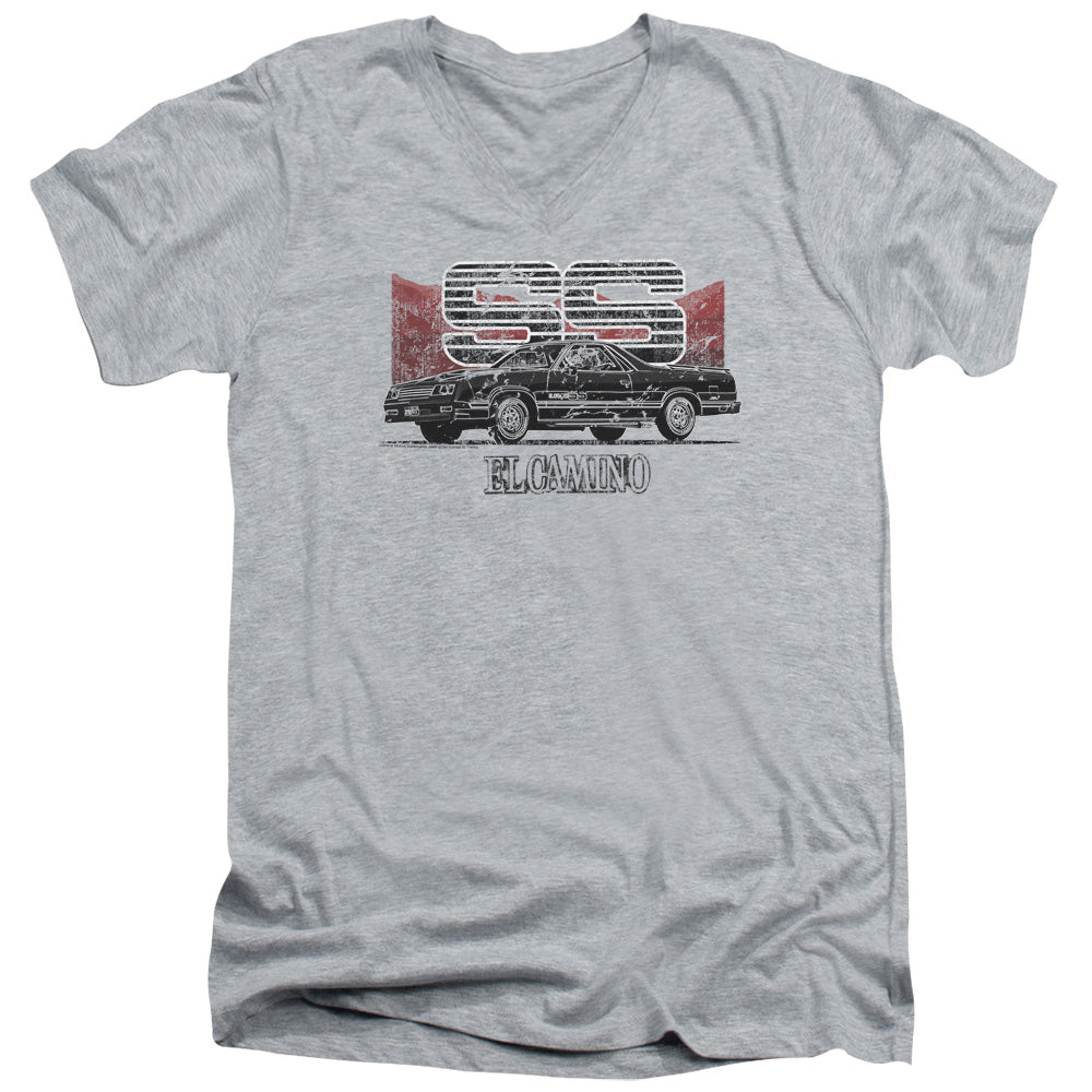 Show off your El Camino SS pride with this officially licensed slim-fit V-neck t-shirt. Featuring a bold mountain-inspired El Camino SS graphic, this tee is made from soft, breathable cotton in a stylish athletic heather color, perfect for a modern, sleek look.