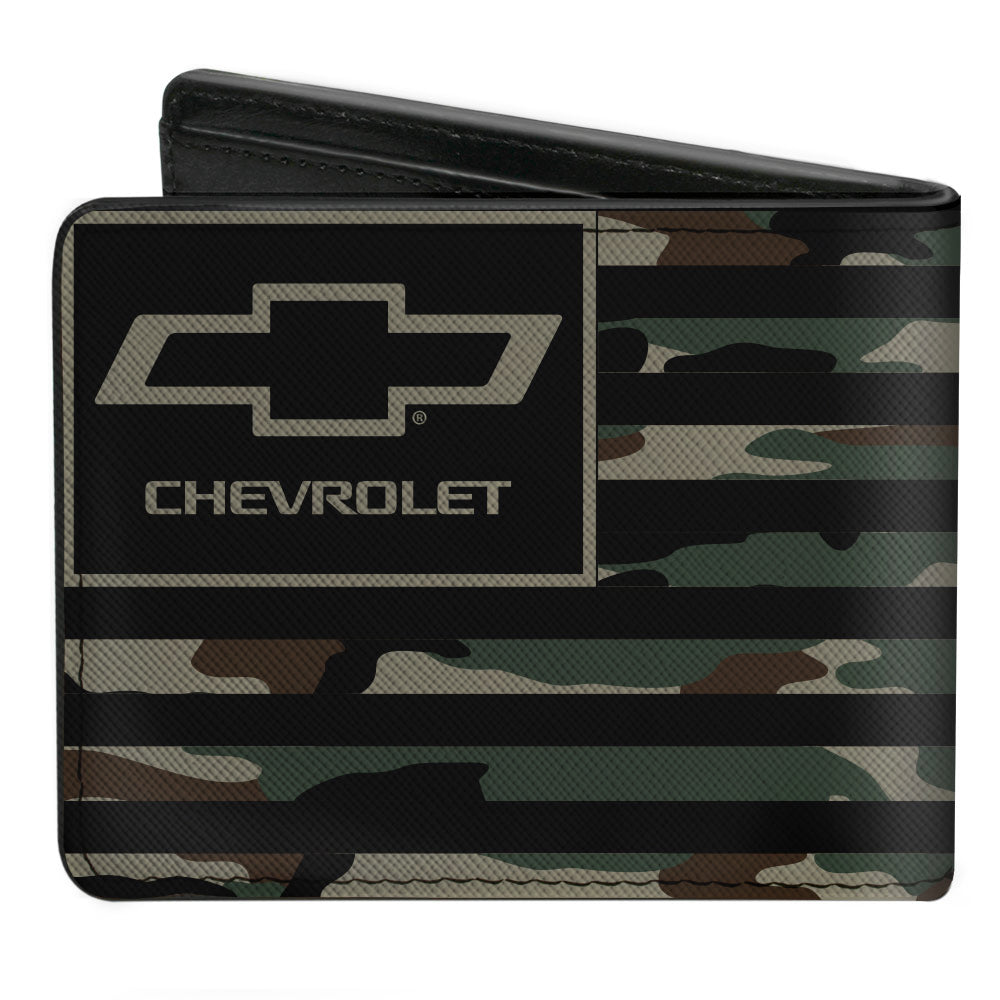 Chevrolet Bowtie American Flag Weathered Camo Olive & Black Bi-Fold Wallet