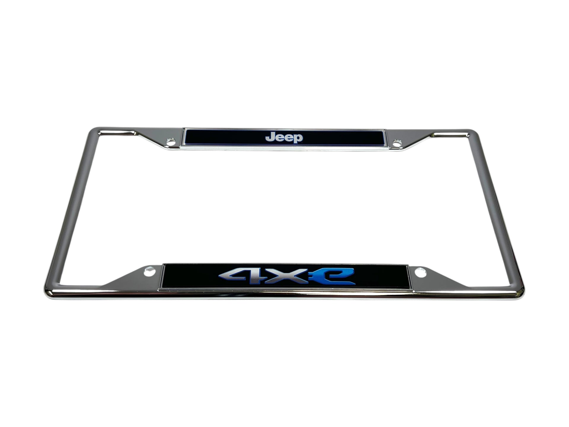 Elevate your vehicle's style with the Jeep 4XE Chrome License Plate Frame. This stunning frame is designed specifically for Jeep 4XE owners who appreciate a blend of elegance and durability. Its sleek chrome finish not only enhances the visual appeal of your ride but also offers a protective barrier against the elements, ensuring that your license plate remains safe and secure.