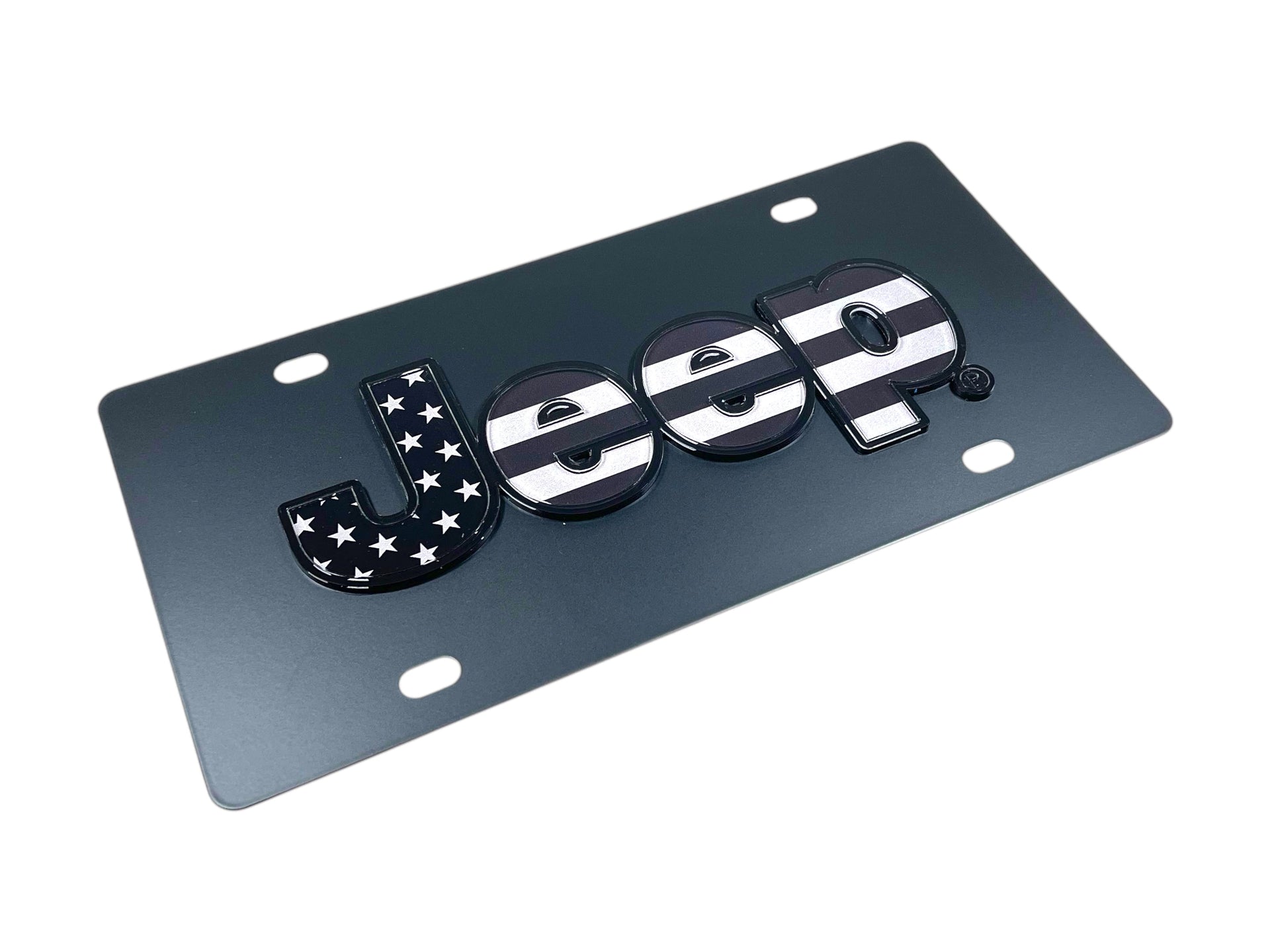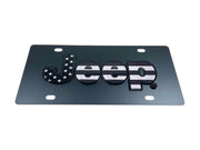 The Jeep Blacked Out USA Flag Carbon Steel License Plate is an essential addition for any proud Jeep enthusiast. Not only does it enhance your vehicle’s aesthetic appeal, but it also makes for a thoughtful gift for fellow Jeep lovers. Elevate your automobile's look, make a statement on the road, and showcase your loyalty to both Jeep and the United States with this exceptional license plate!