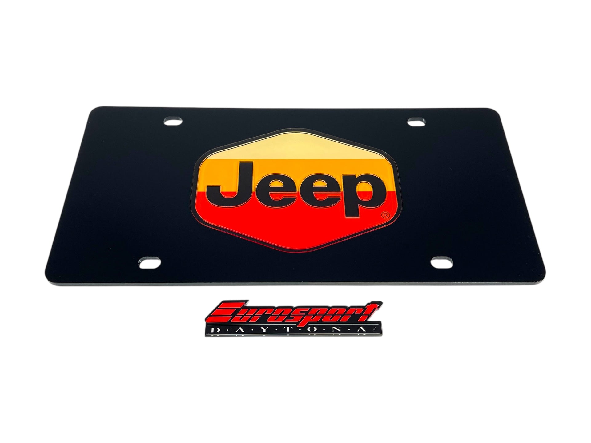 One of the standout features of this Retro Jeep Logo Acrylic License Plate is its vibrant colors. The eye-catching logo is embedded deeply into the acrylic surface, guaranteeing it won't fade over time. Whether you're driving on the highway or parked in your driveway, this plate makes a statement.
