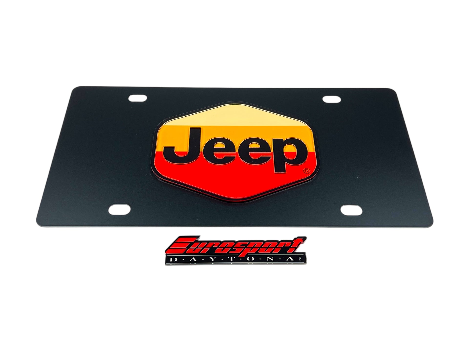 Expertly crafted from high-quality carbon steel, this license plate promises longevity and resistance against the elements. The iconic Retro Jeep logo is prominently displayed, making a bold statement whether you're on the road or parked at your favorite campsite.