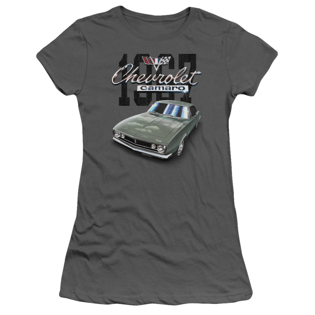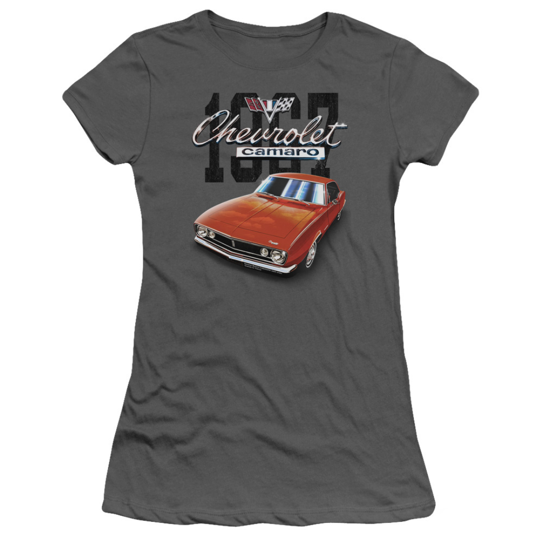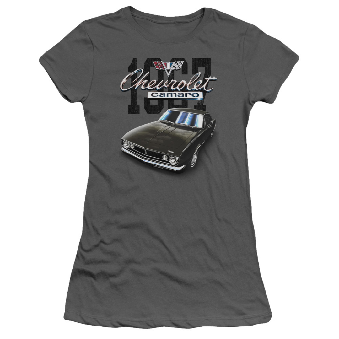 Celebrate the iconic 1967 Chevrolet Camaro with this officially licensed juniors sheer cap sleeve t-shirt. Designed for a slim, flattering fit, this lightweight tee features a bold 1967 Camaro Classic graphic on soft, breathable fabric, perfect for everyday wear.